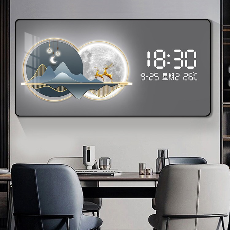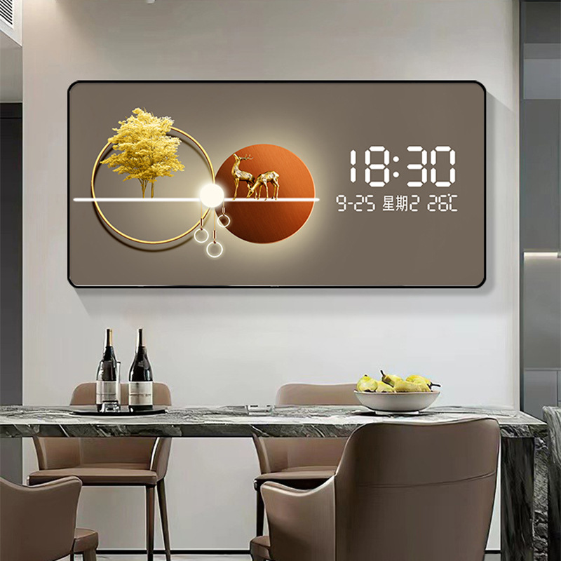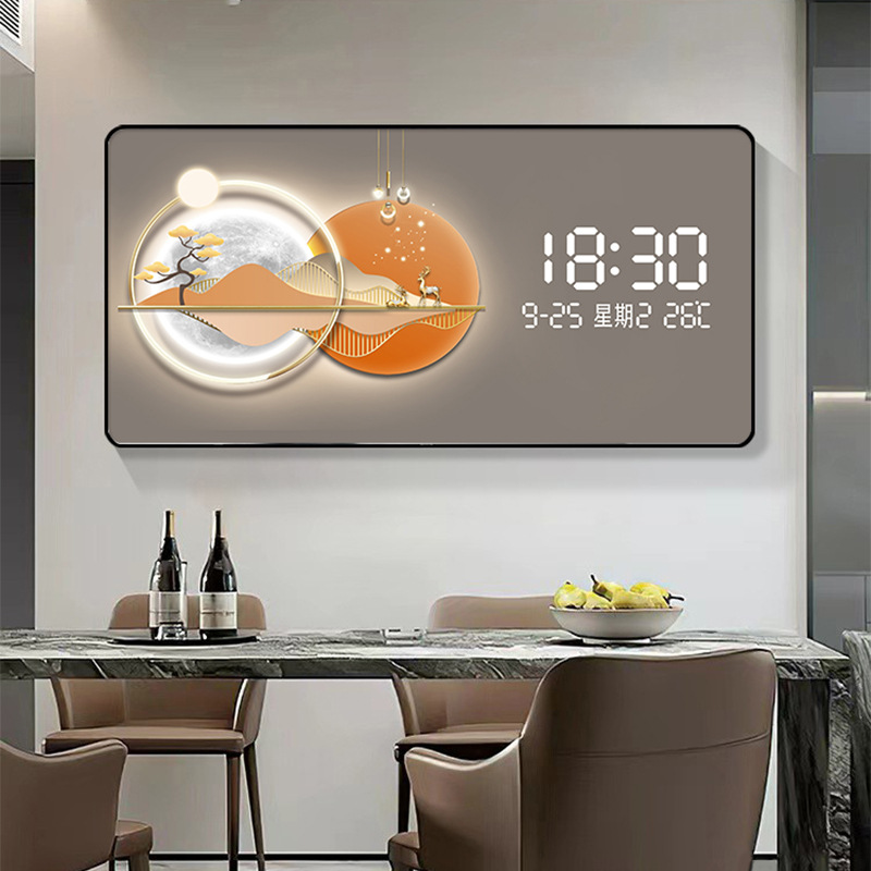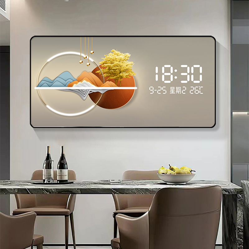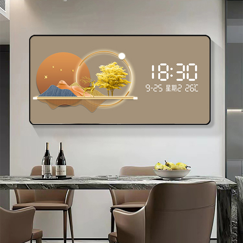 Электронные часы и декоративная живопись на стене вечный календарь