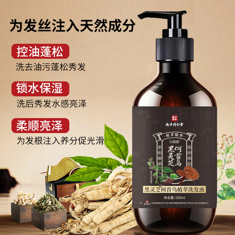 Nanjing Tongrentang Черный экстракт растений Ganoderma и Polygonum Multiflorum Шампунь против перхоти Контроль жирности Черные и яркие волосы Отбеливание Несмываемый черный цвет