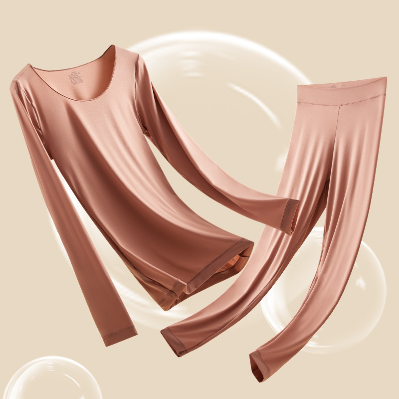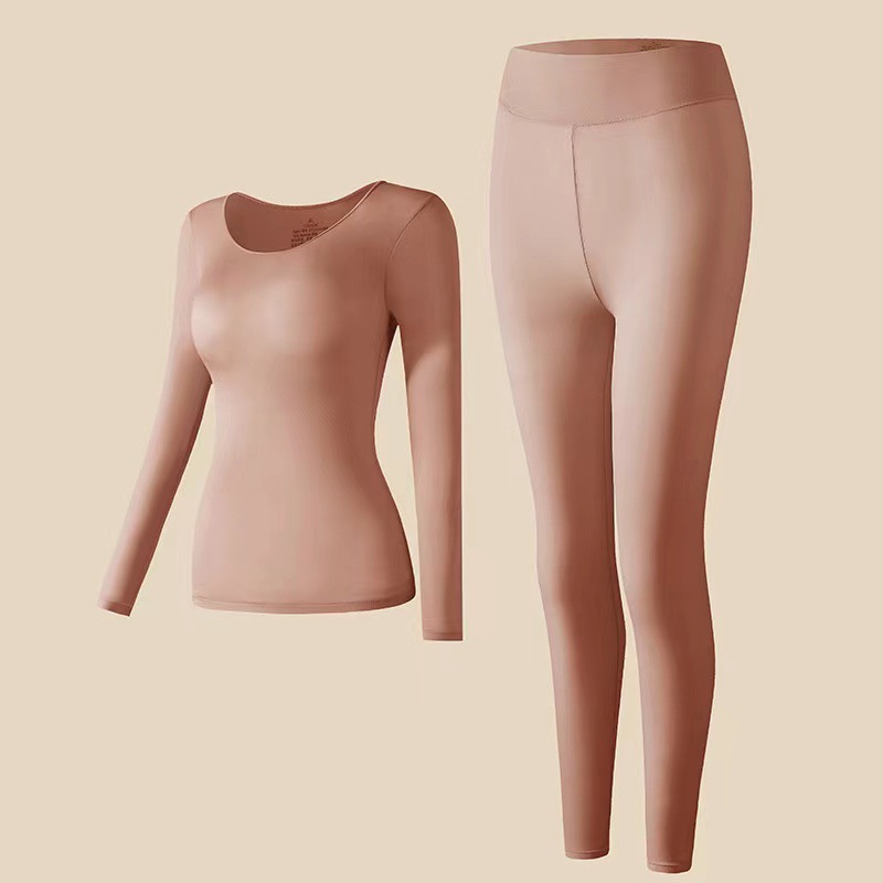 Осенне-зимний базовый комплект термобелья для женщин: бесшовный, легкий, утягивающий, высокоэластичный, с круглым вырезом и длинными рукавами.