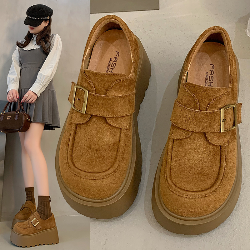 Главная страница > 7 см толстые кожаные ботинки Birkenn Женская весна 2025 новый рост маленькие кожаные ботинки маленькие ретро Lefu одиночные туфли