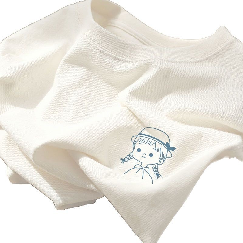 Футболка из хлопка с короткими рукавами женская летняя топа свободная корейская версия женской рубашки с короткими рукавами Rotion новая женская полурукава