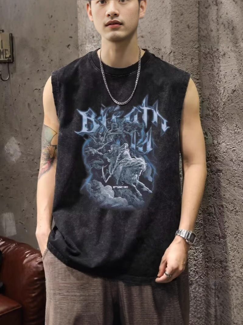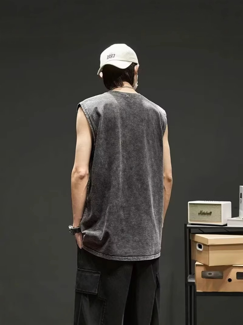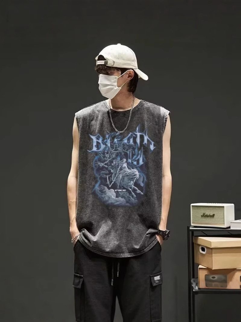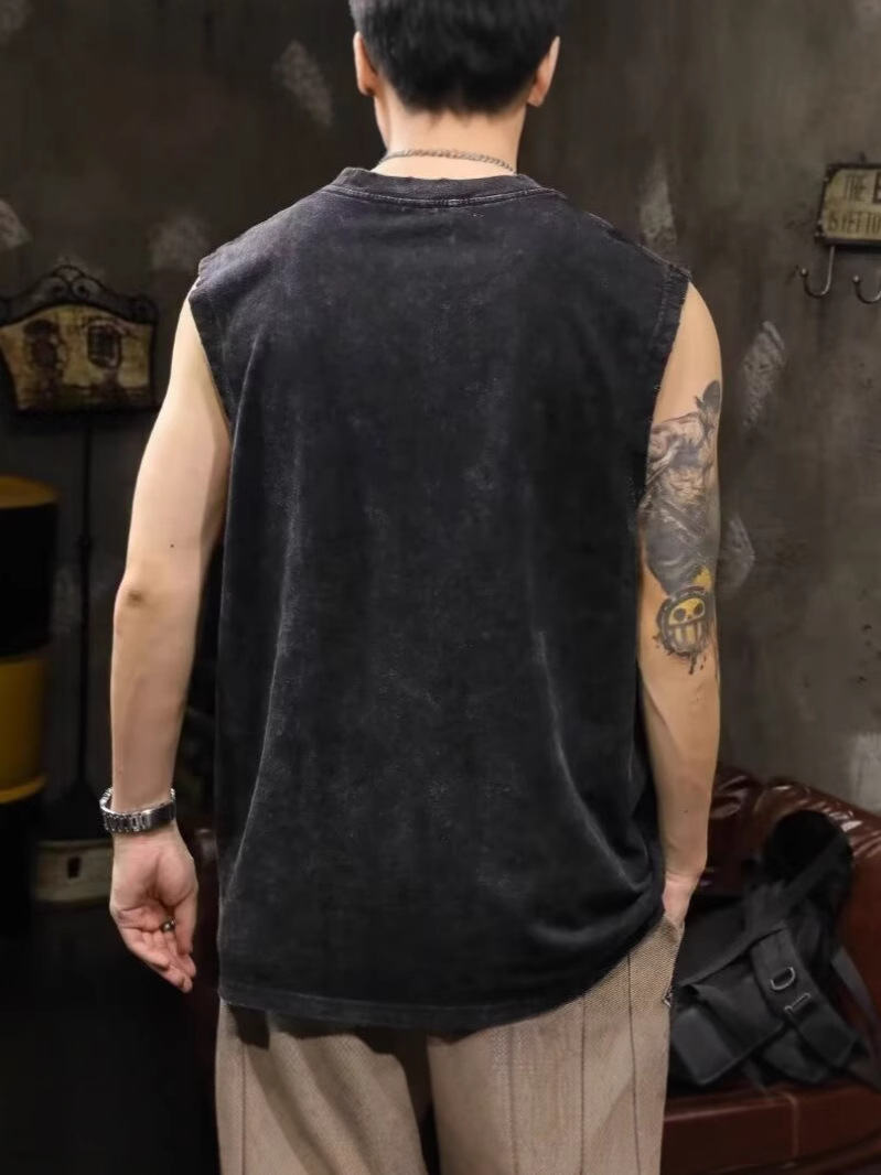 Европейские и американские высокие улицы ретро вымытые старые рок-жилетки для пар повседневных цифровых прямых принтов свободные потовые жилеты для мужчин