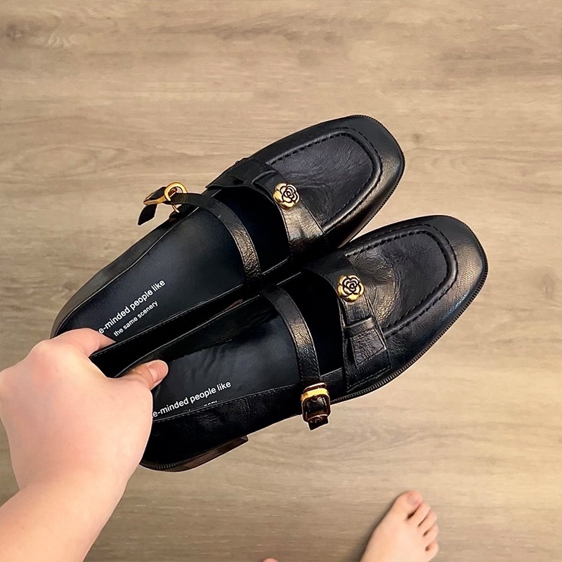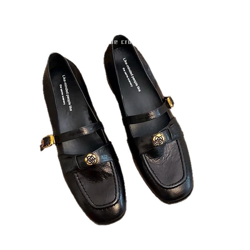 Главная страница > Версия из овчины ~ Кожаные ретро французские одиночные туфли женские толстые каблуки на пуговицы Mary Jen Shoes Commuter Камелия кожаные туфли.
