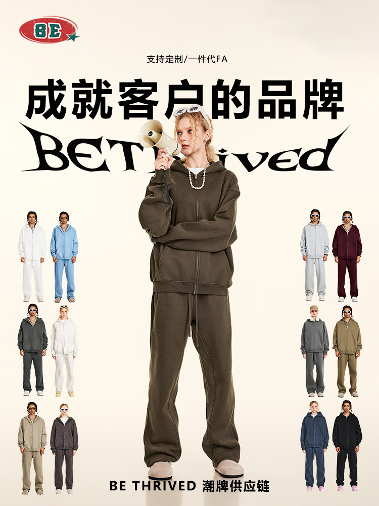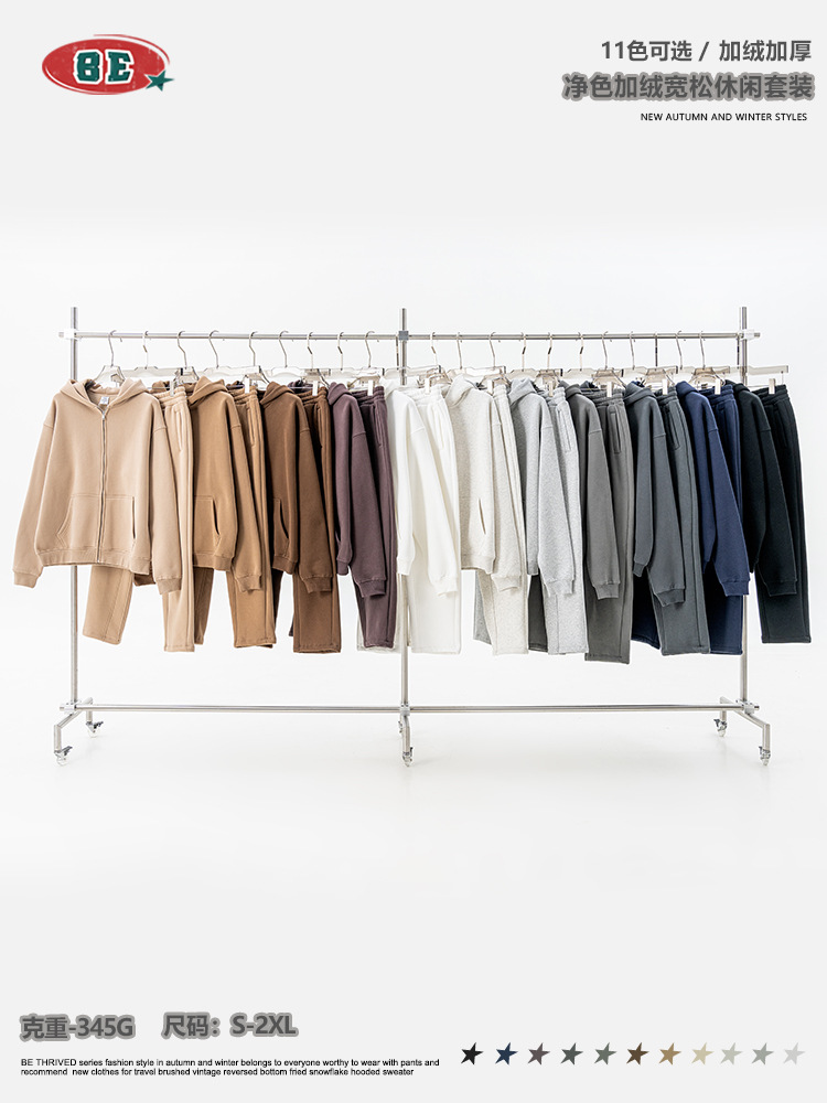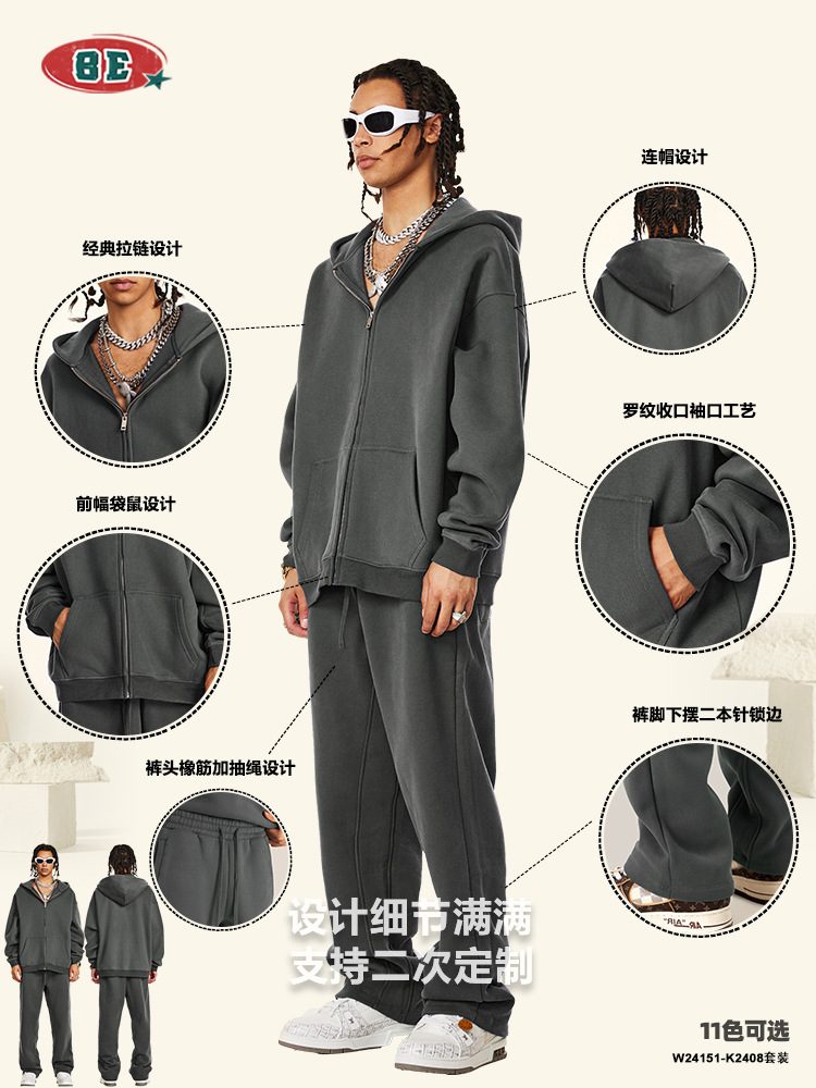 Главная страница > Мужской комплект одежды BE 2025: осенний, в американском стиле, свободный, однотонный, на флисовой подкладке, утолщенный, с капюшоном на молнии, повседневные длинные брюки для мужчин