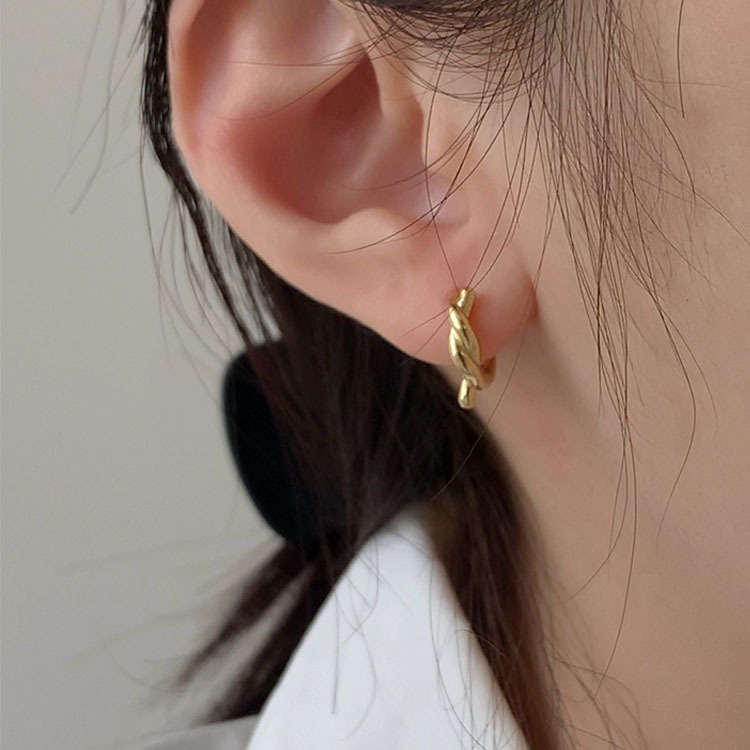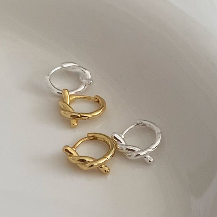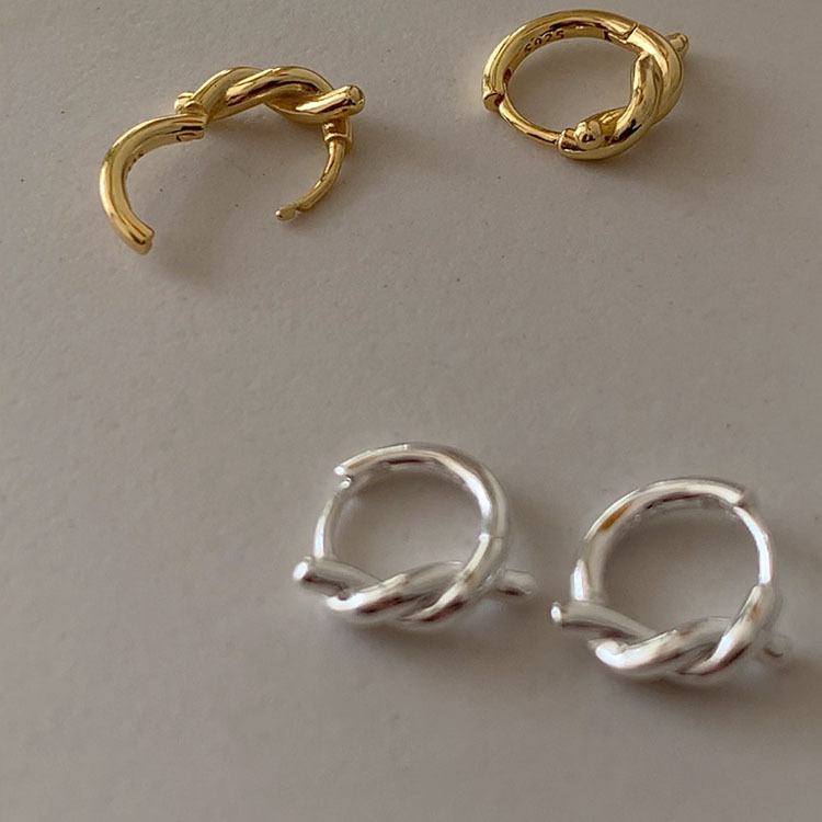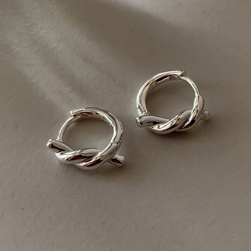 Женские серьги-кольца из серебра 925 пробы, новый стиль, нишевый дизайн, не нужно снимать во время сна, высококачественные серьги с веревочным узлом в стиле ins.