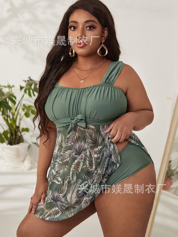 Европейский и американский новый внешнеторговый трансграничный большой размер, облегающий, с открытой спиной, закрывающий живот, для похудения, консервативный цельный купальник в стиле юбки для женщин