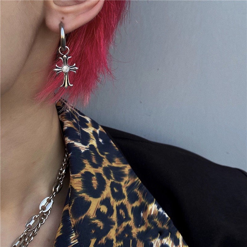 Винтажные рваные серьги с бриллиантовым крестом Модные мужские нишевые темные пряжки для ушей Мужские и женские хип-хоп Холодный ветер Зажим для одного уха