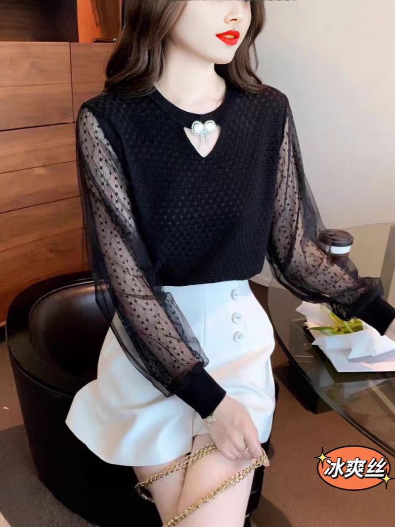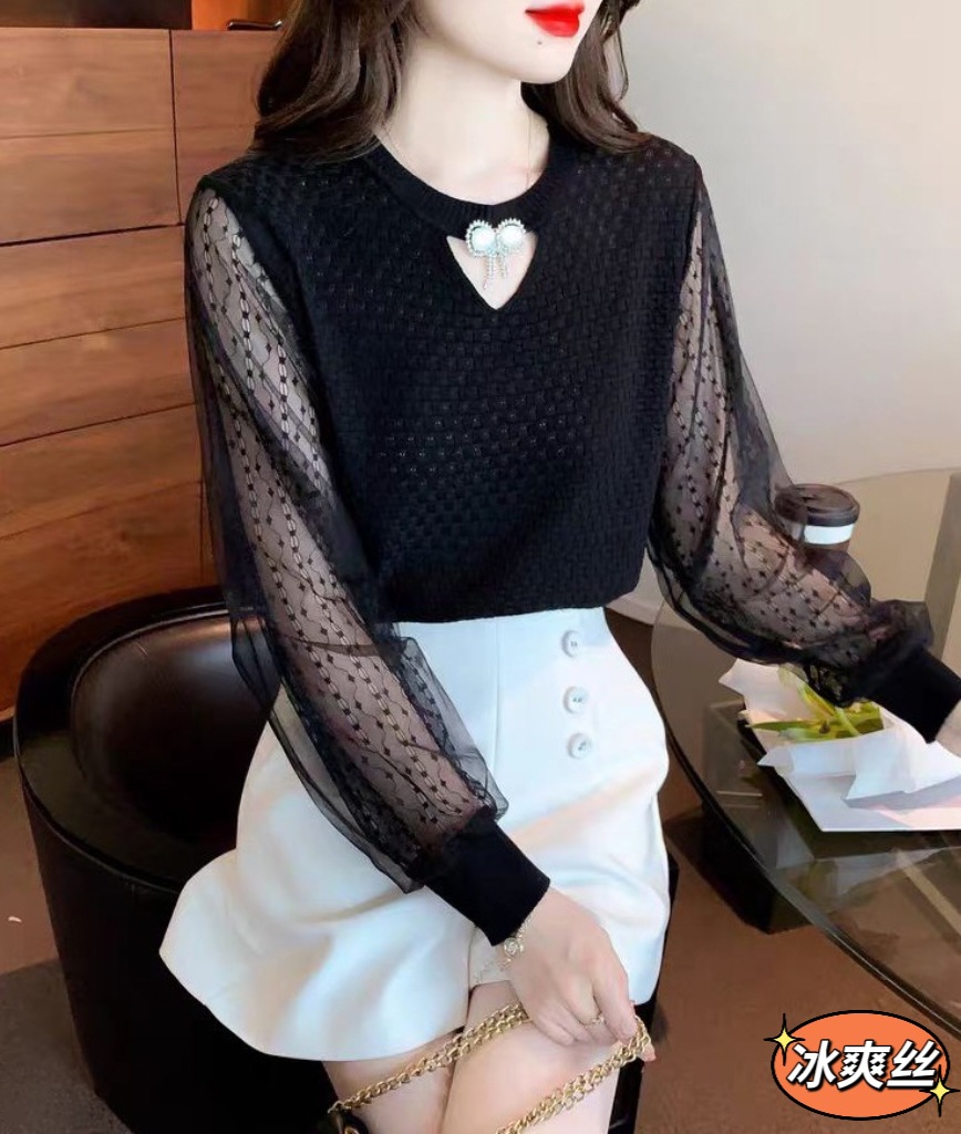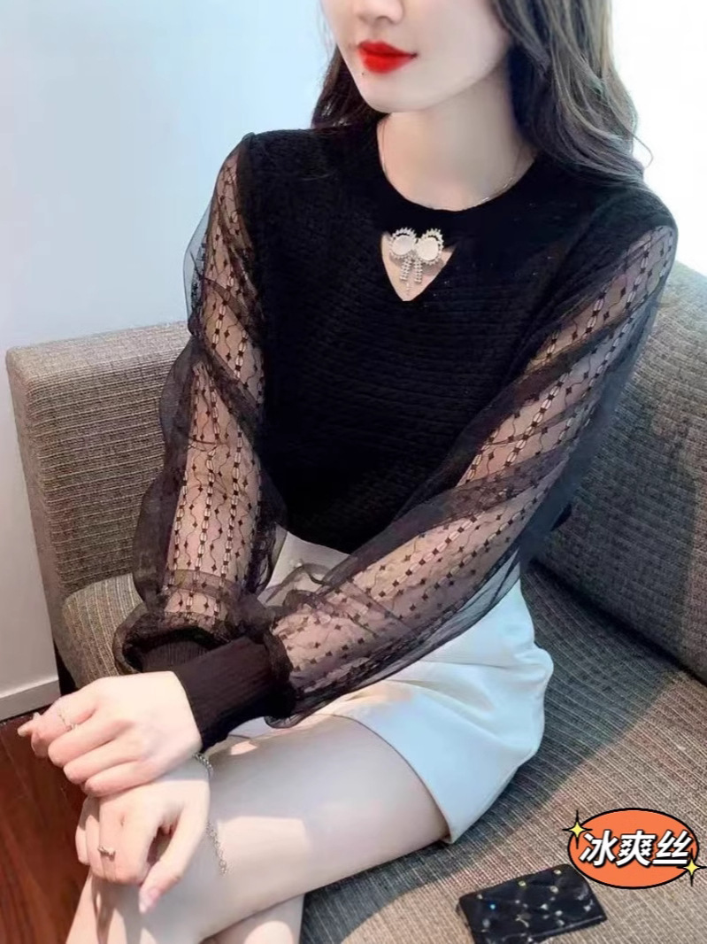 Главная страница > Вязаная пряжа сплайт-свитер женский 2024 осень новая мода с длинными рукавами блузка рубашка нижняя рубашка оптом