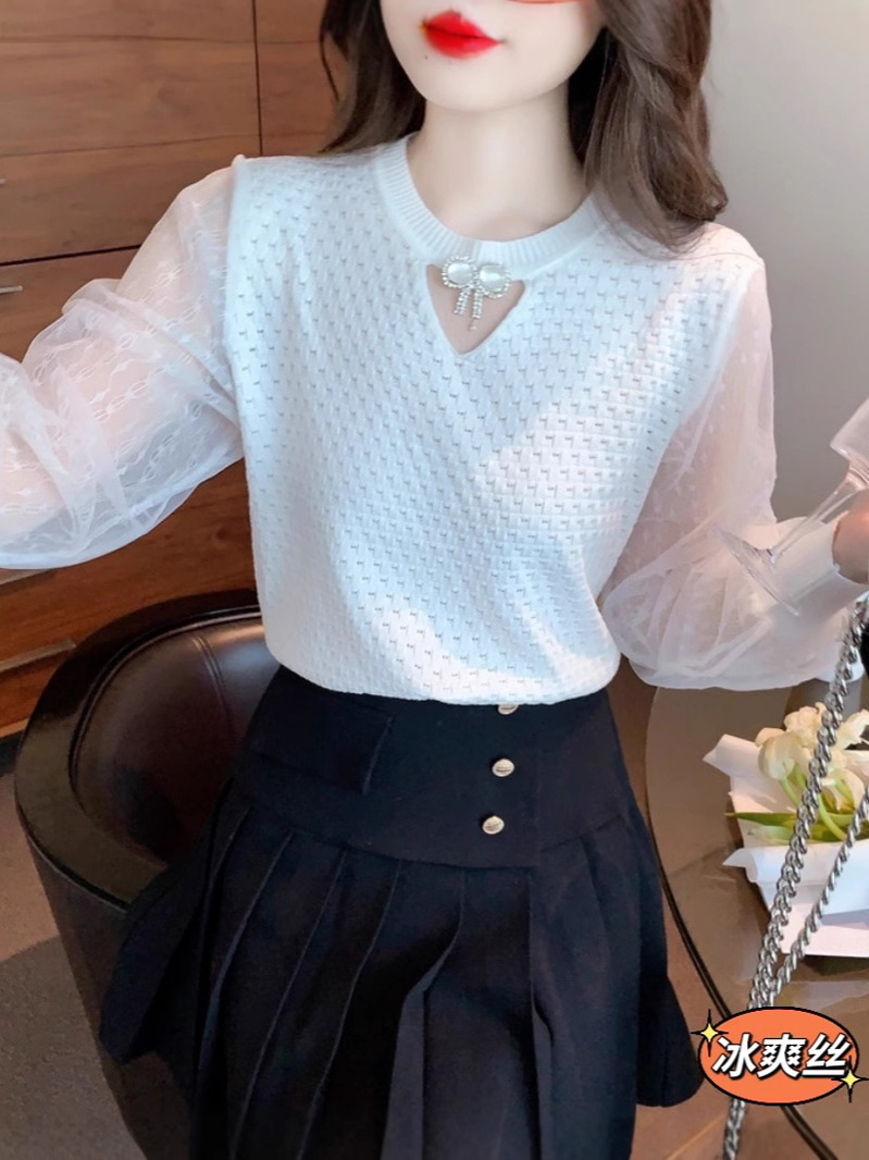 Вязаная пряжа сплайт-свитер женский 2024 осень новая мода с длинными рукавами блузка рубашка нижняя рубашка оптом