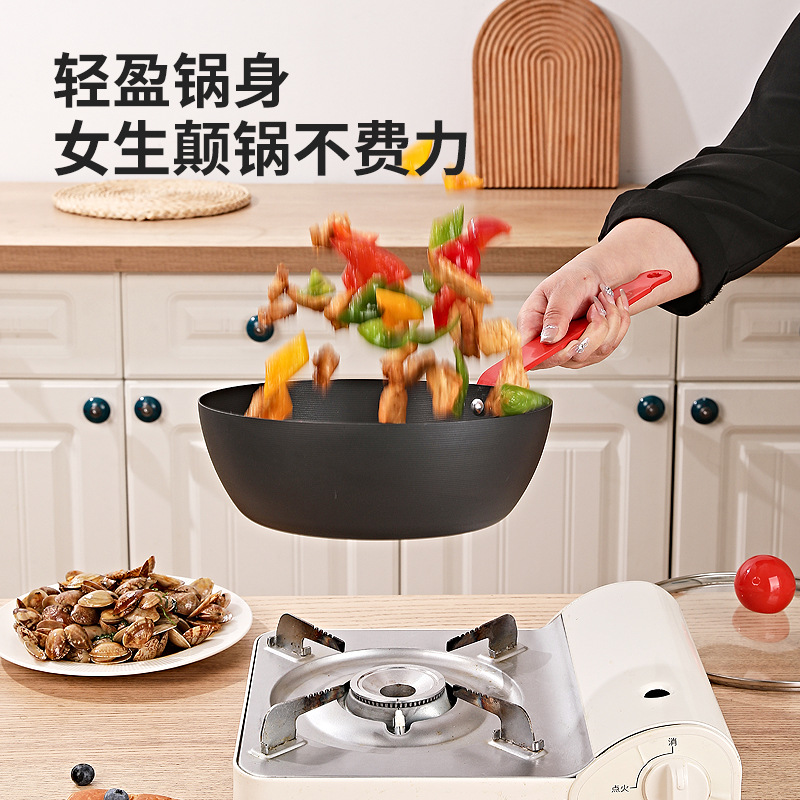 Мини-маленький железный вок вок домашний непокрытый плоский нижний антипригарный горшок