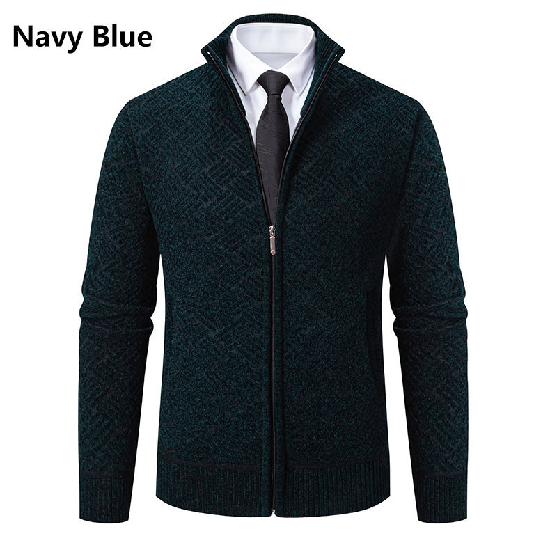 Главная страница > Мужской вязаный свитер внешняя торговля осень-зима новый сплошной цвет плюс бархат повседневный свитер с воротником кардиган куртка мужской топ