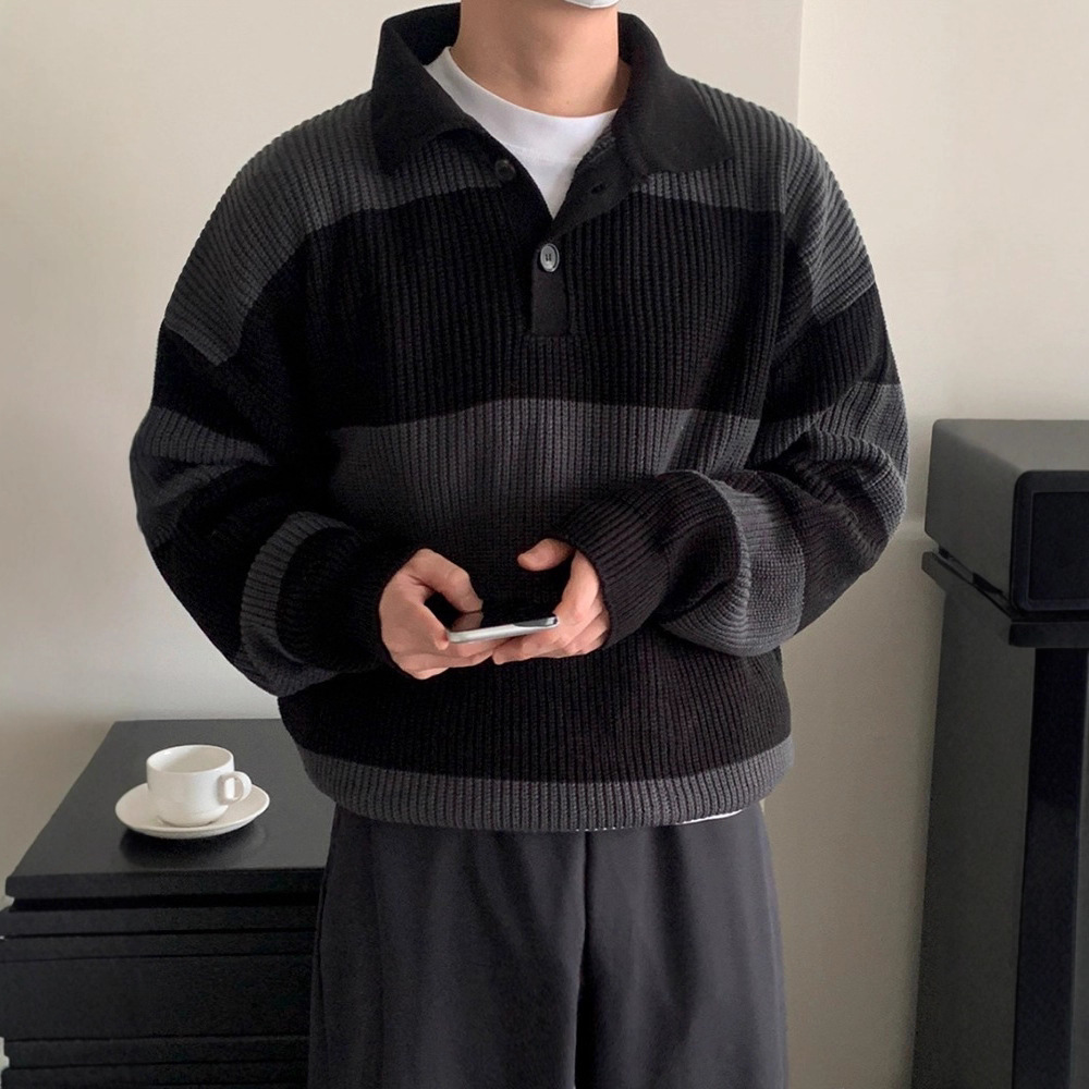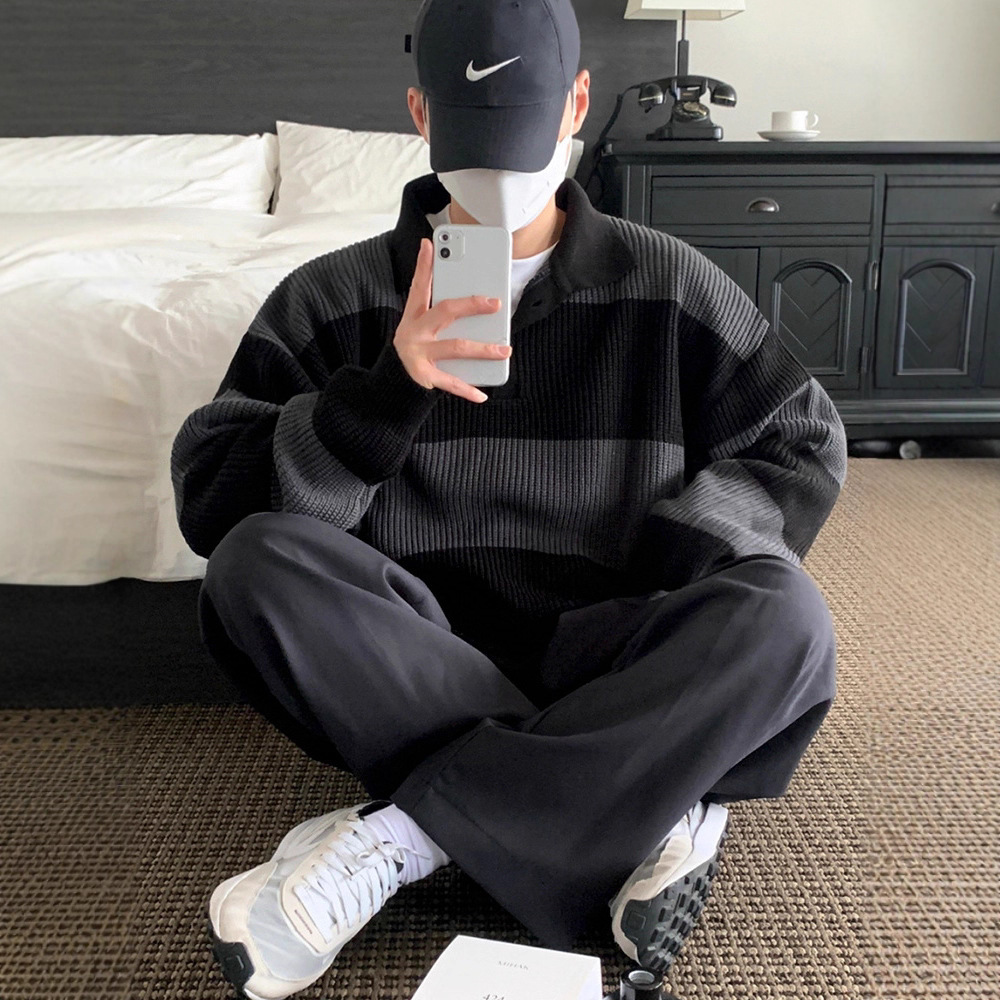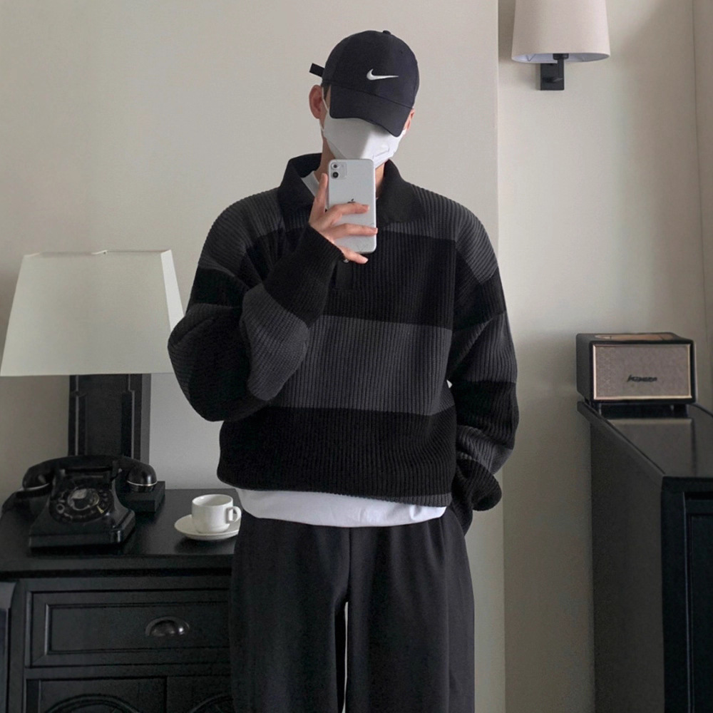 Главная страница > Японский контрастный полосатый свитер поло мужской осенний корейский тренд