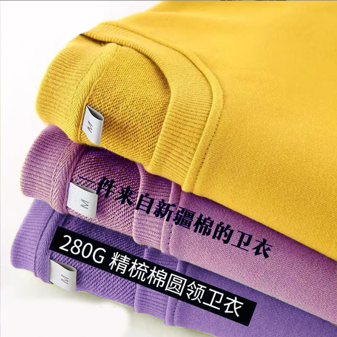 Мужской свитшот из чесаного хлопка с круглым вырезом, 280 г, однотонный, в стиле Гонконг, повседневный, в японском стиле, для пар