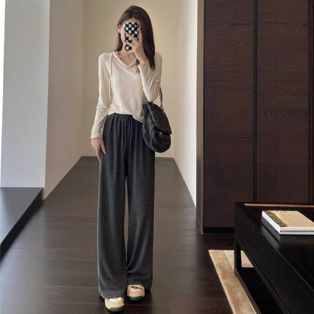 Главная страница > Осенне-зимние мягкие теплые женские прогулочные брюки с клейким рисом, большие длинные ноги, свободные широкие брюки с высокой талией, повседневные Прямые напольные брюки для женщин