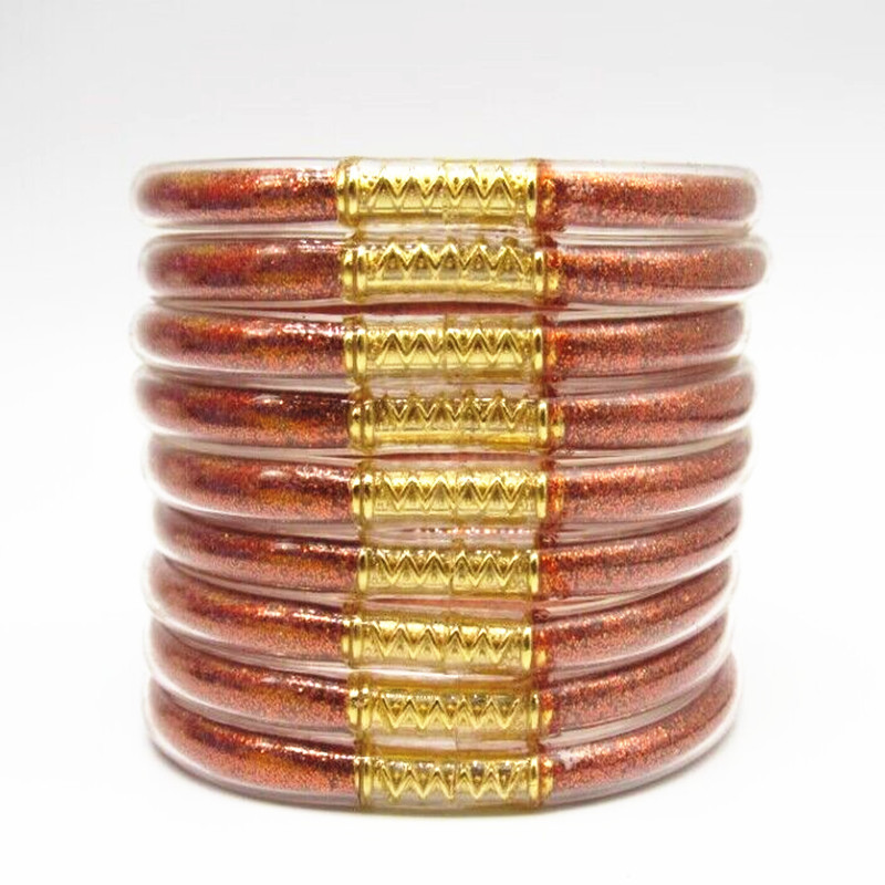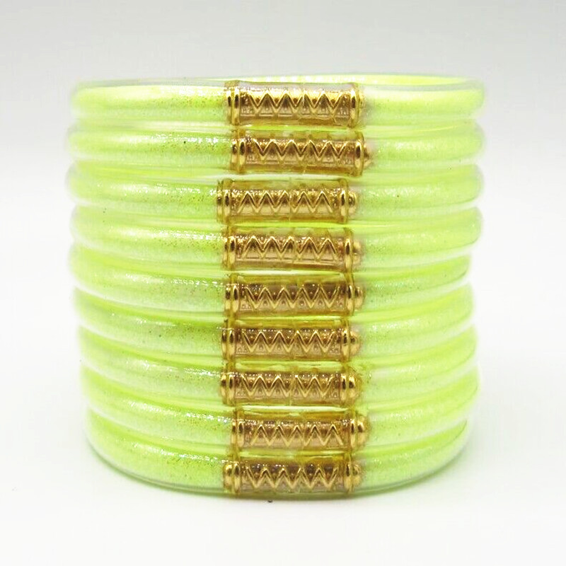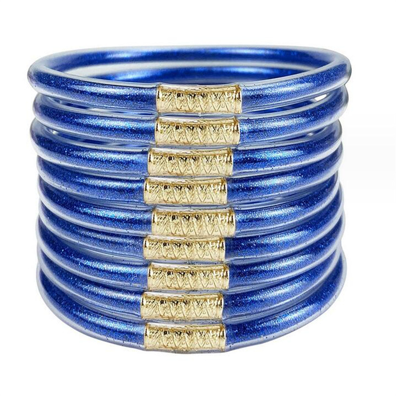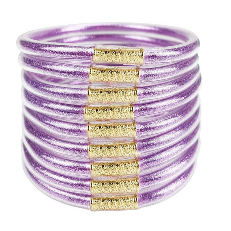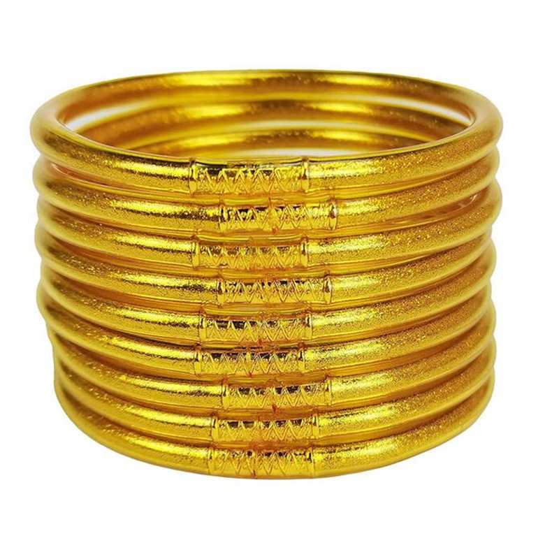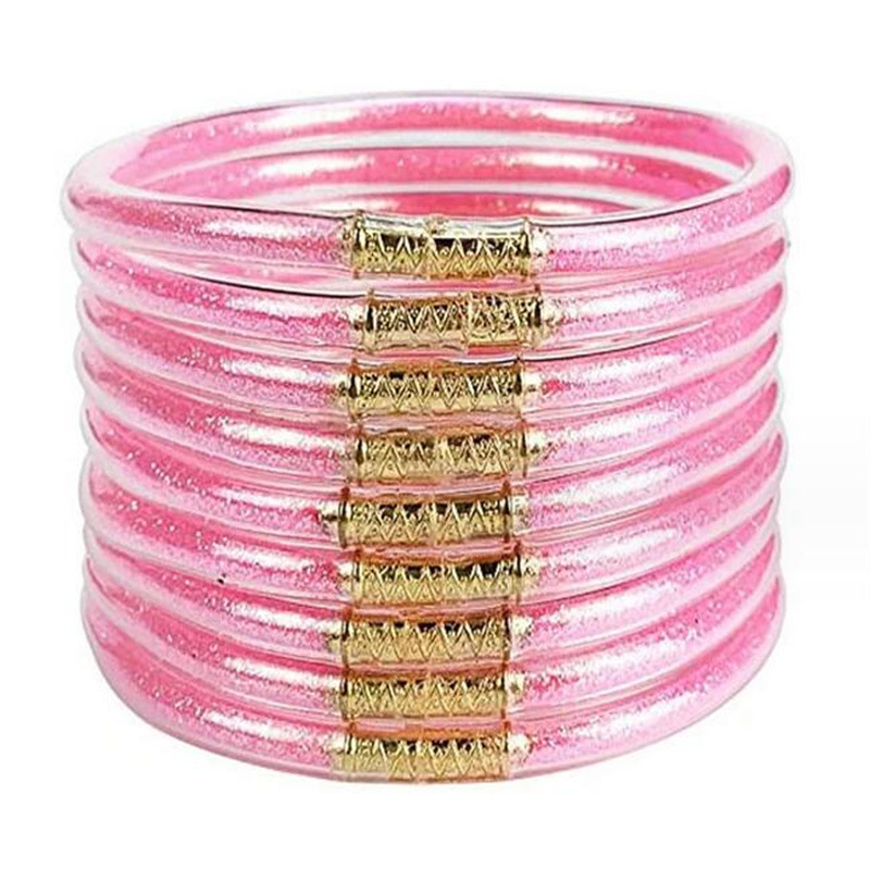 Главная страница > 9-слойный золотой розовый браслет двойной пинг тройной комбинации блестящие конфеты силиконовый женский браслет JELLY BANGLES