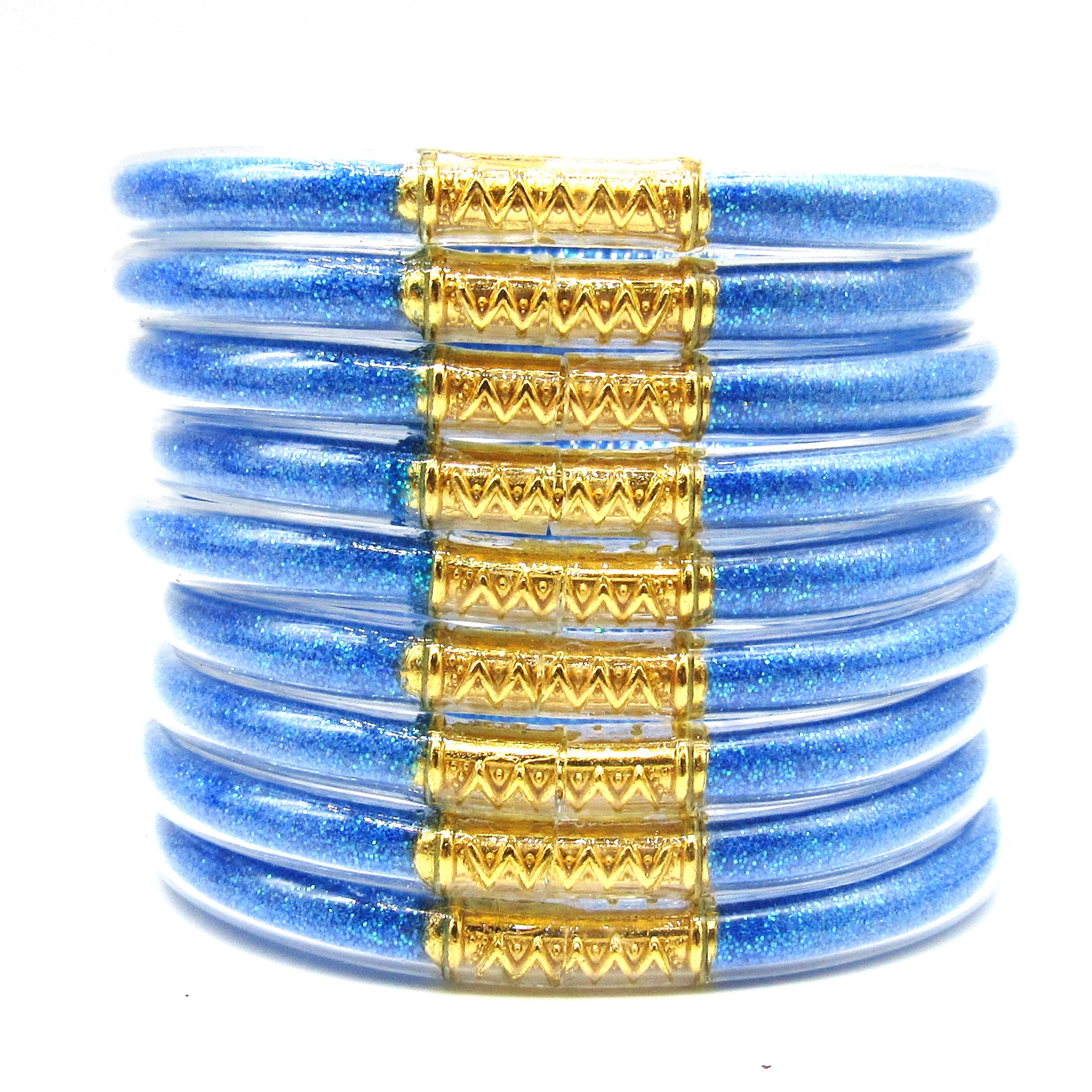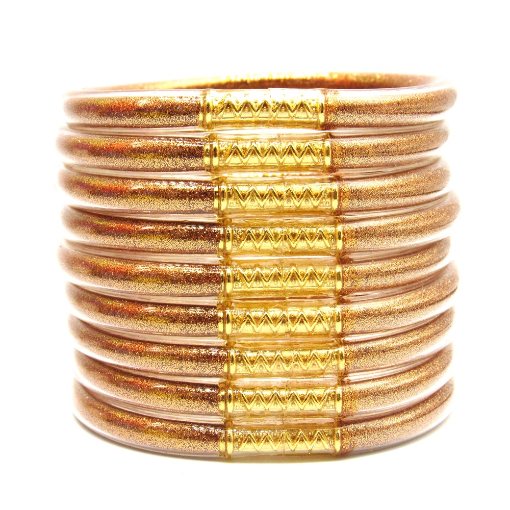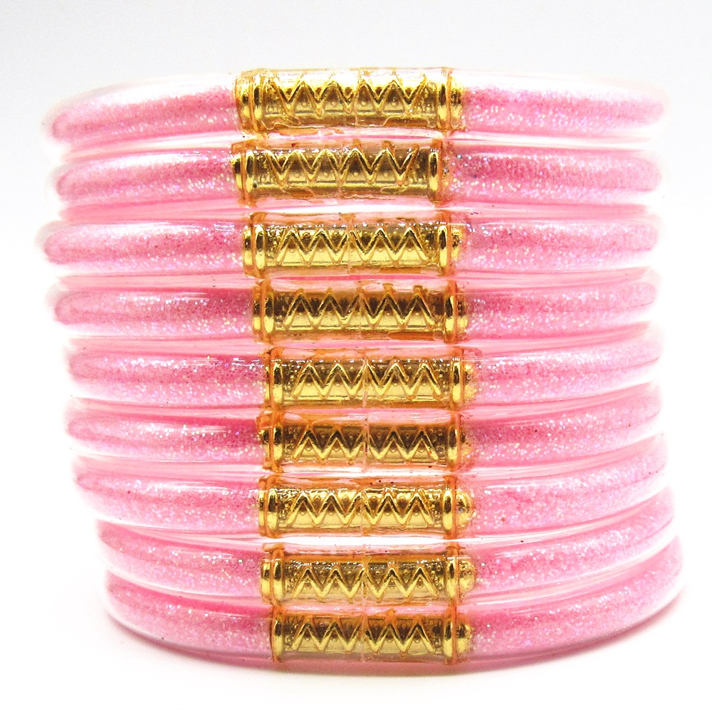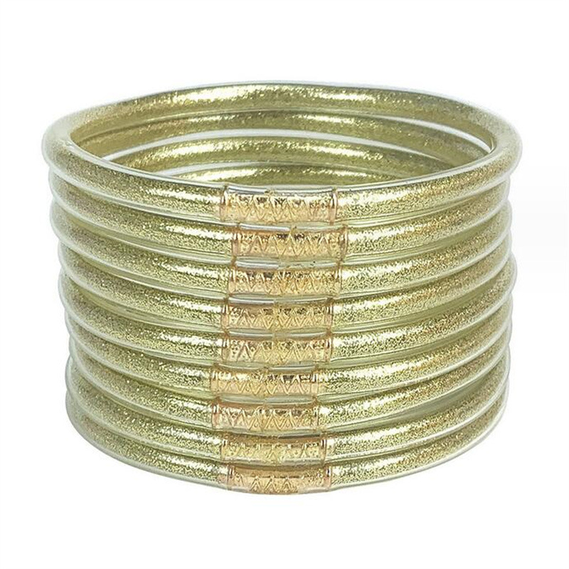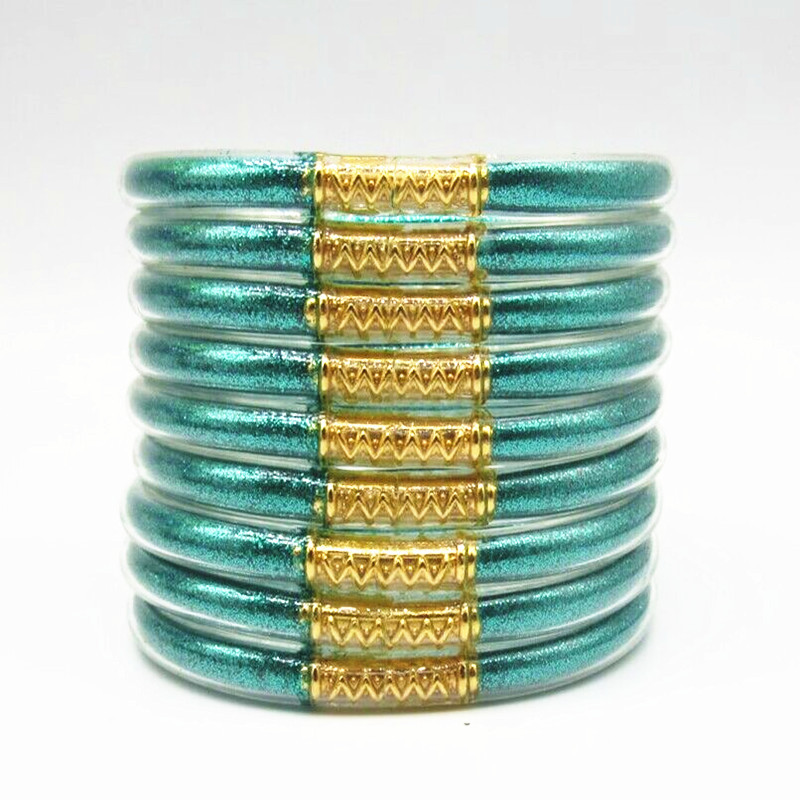 Главная страница > 9-слойный золотой розовый браслет двойной пинг тройной комбинации блестящие конфеты силиконовый женский браслет JELLY BANGLES