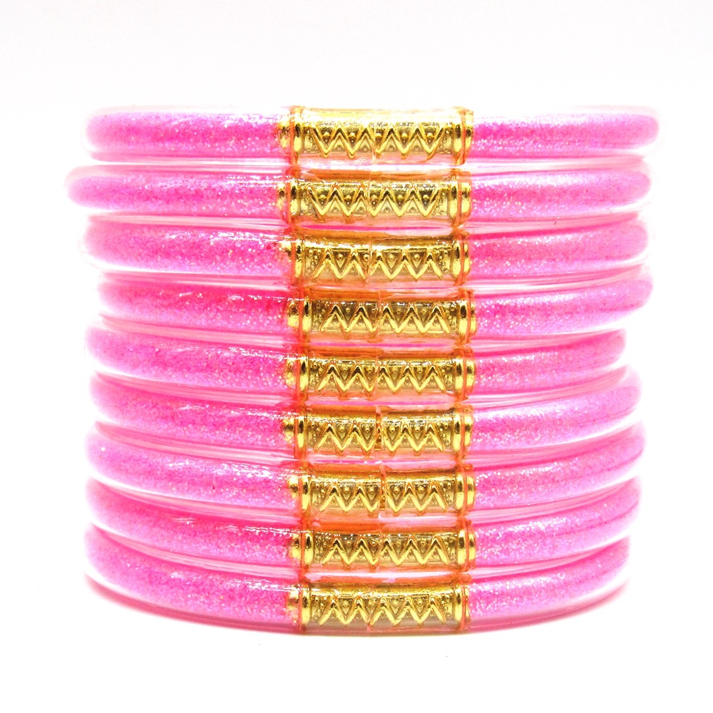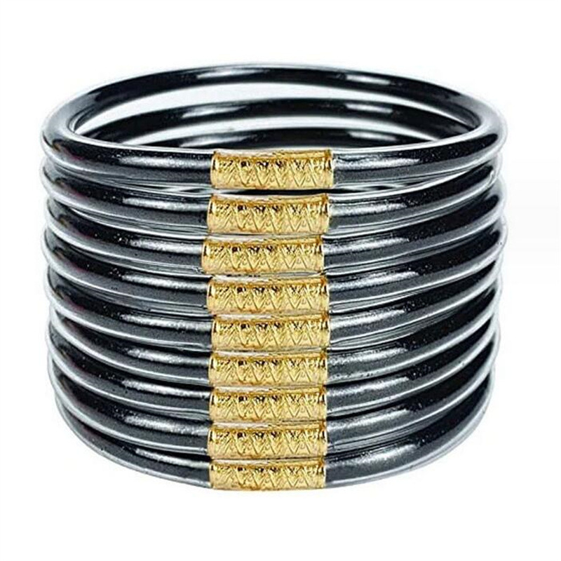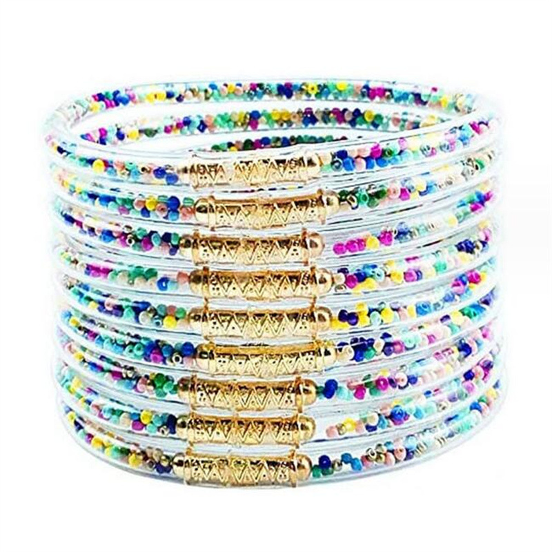 9-слойный золотой розовый браслет двойной пинг тройной комбинации блестящие конфеты силиконовый женский браслет JELLY BANGLES