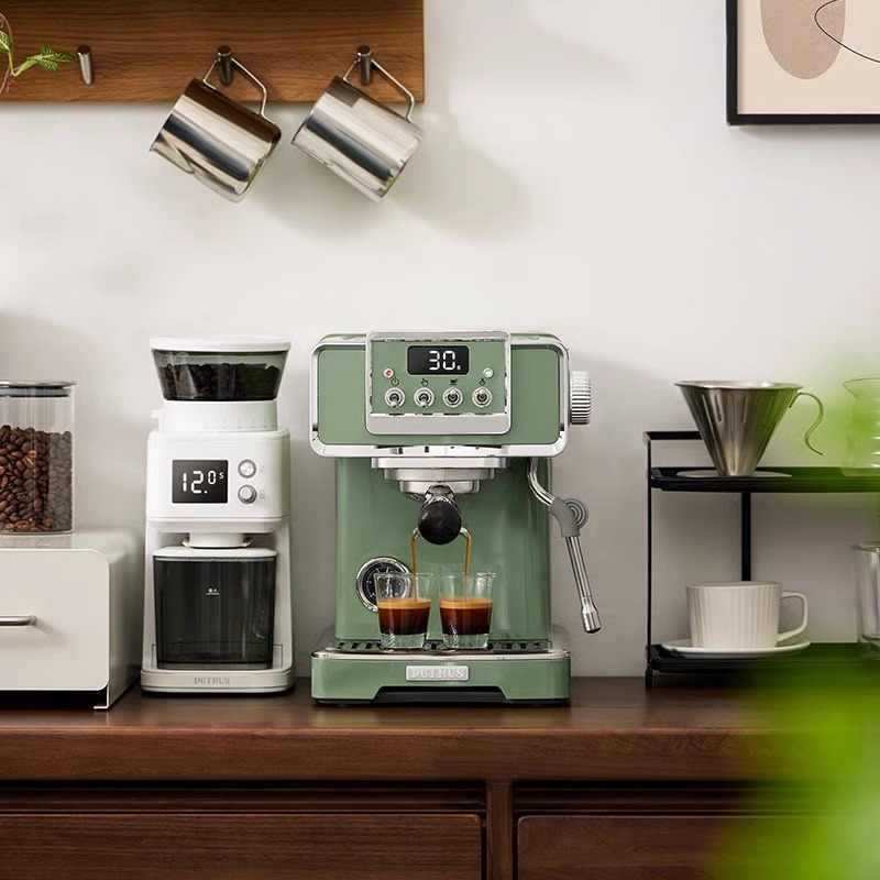 Главная страница > Кофемашина Petrus/PE3828GR итальянского производства для домашнего использования, компактная полуавтоматическая кофеварка для зерен в стиле ретро PRO
