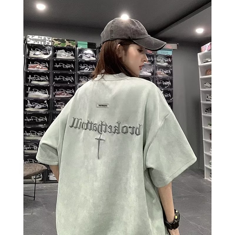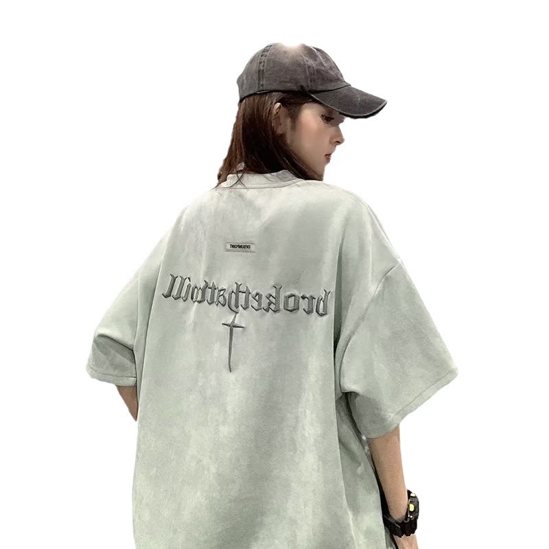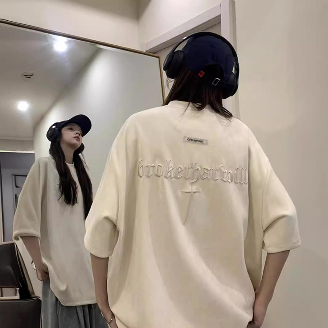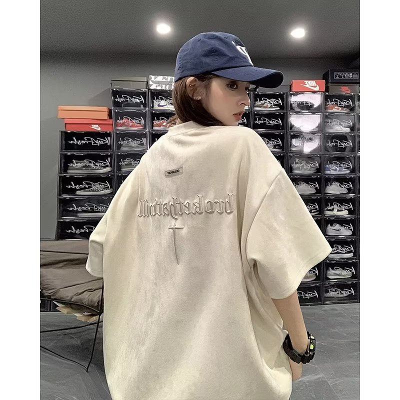 Главная страница > Футболка с короткими рукавами мужская летняя новая американская ретро улитка красивый вышивка тяжелый прилив свободного замшевого полурукава футболка