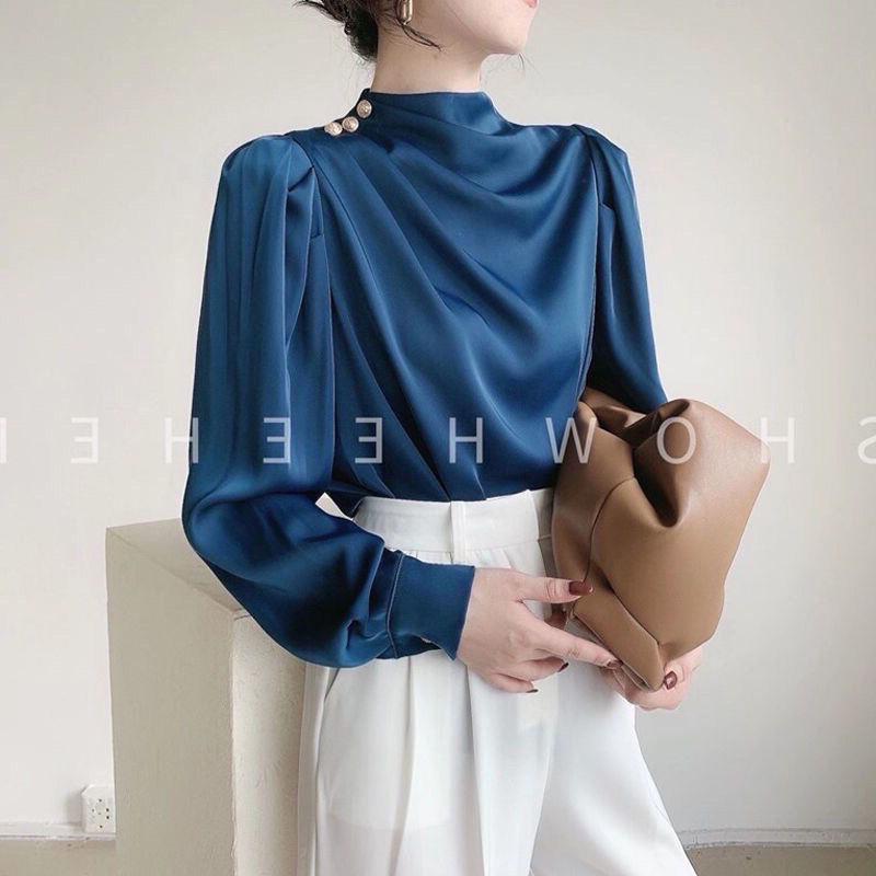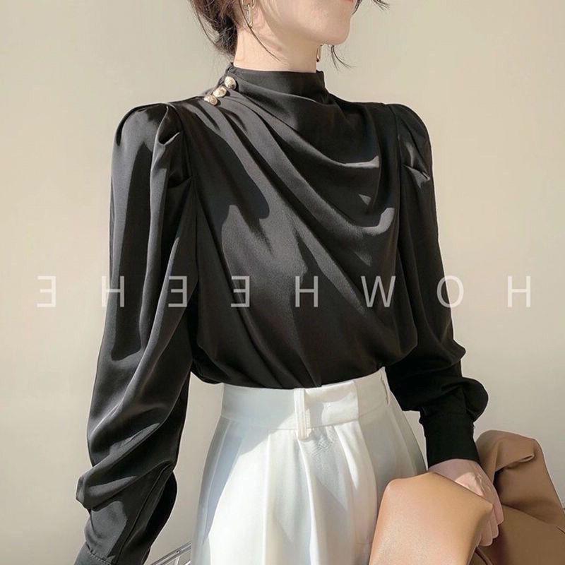 Главная страница > Рубашка женский дизайн чувство ниши ретро гонконгский стиль рубашка атласная уксусная кислота профессиональный стиль модный воротник топ осень