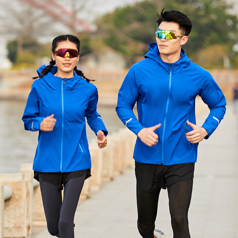 Мужская и женская ветровка для бега, спортивная куртка с капюшоном для занятий спортом на открытом воздухе, легкая дышащая повседневная рубашка с длинными рукавами на молнии, индивидуальный пошив
