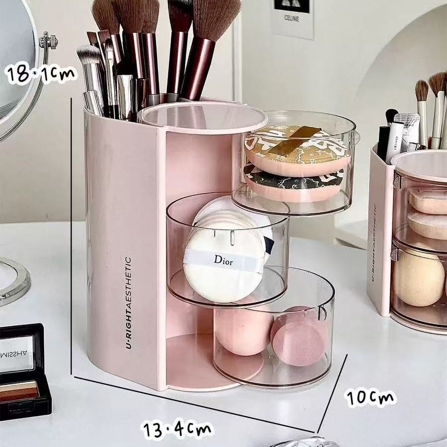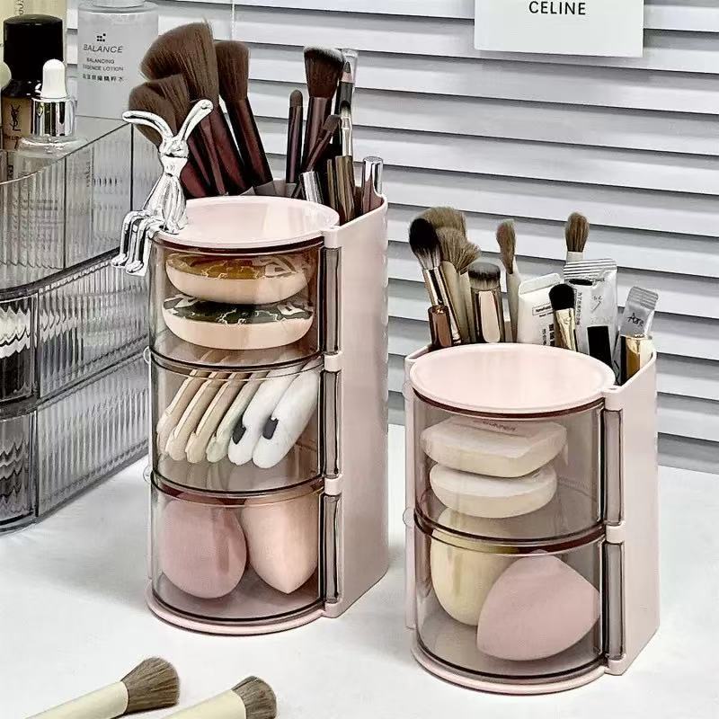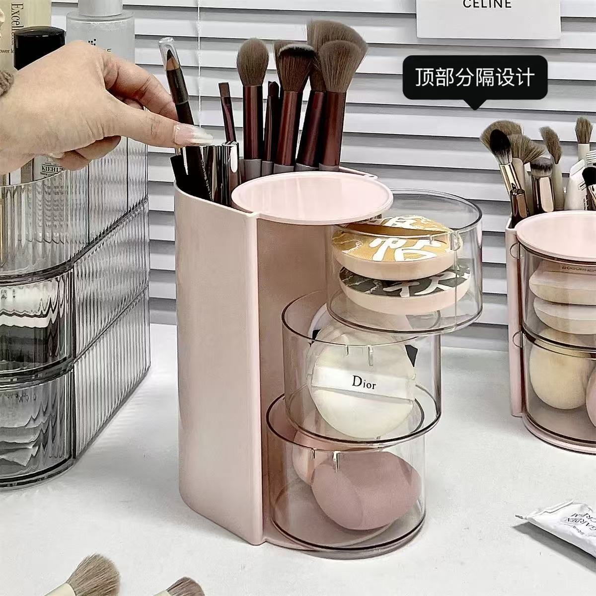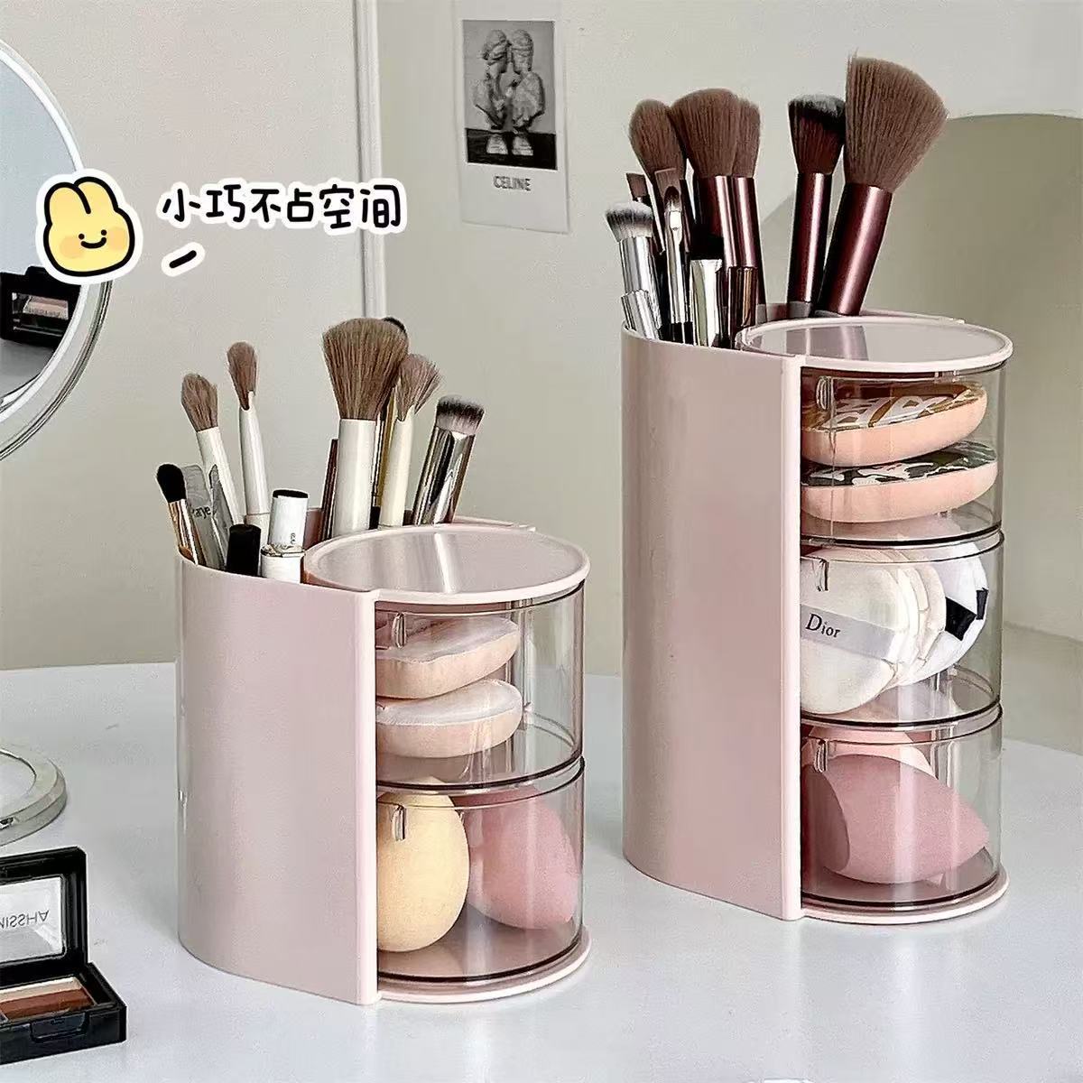 Главная страница > Настольная вращающаяся трубка для хранения кистей для макияжа, пудра, карандаш для бровей, косметическое яйцо, пылезащитный ящик для хранения, небольшая полка для хранения косметики