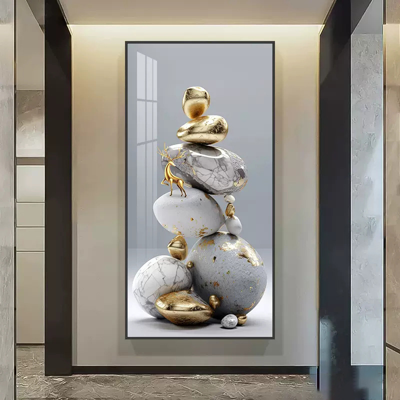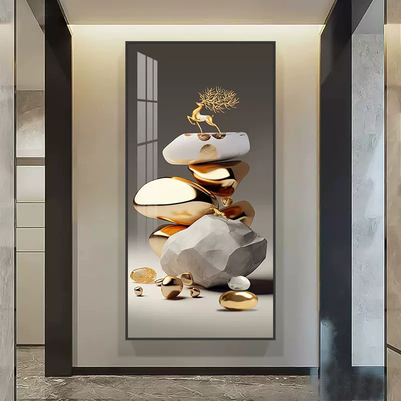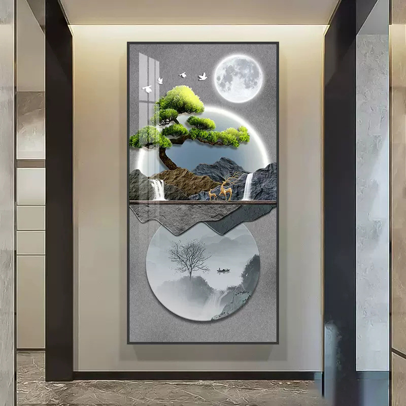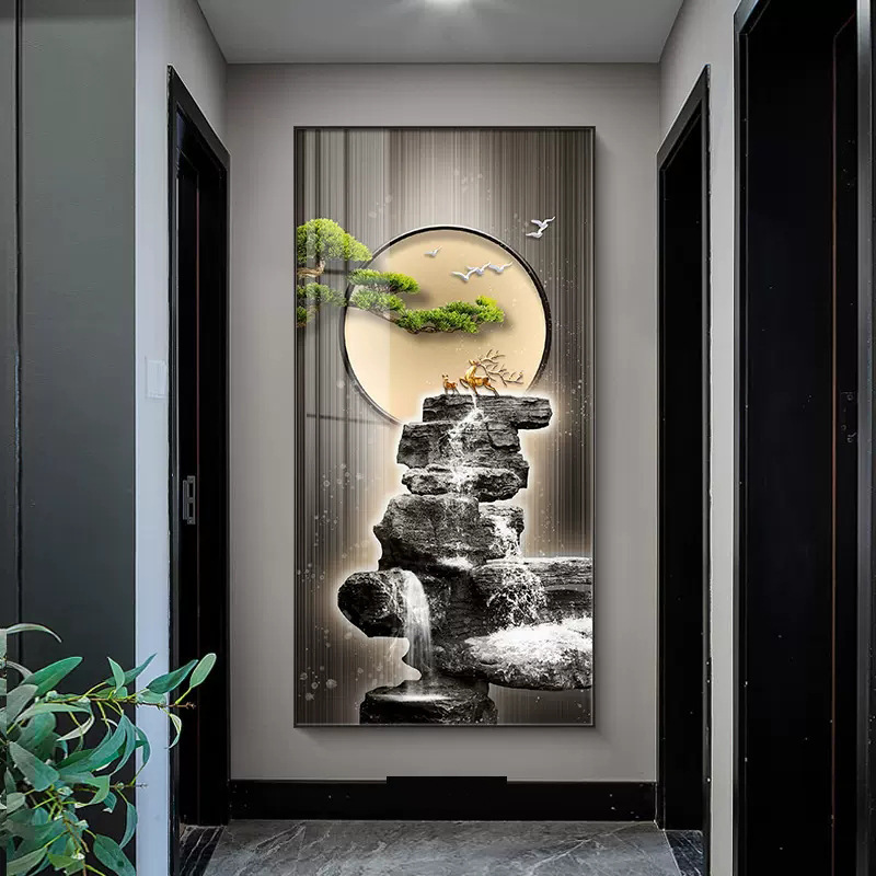 Новый прихожая в китайском стиле, текущая вода приносит богатство, декоративная живопись, коридор, конец прохода, атмосферный пейзаж, хрустальная фарфоровая живопись