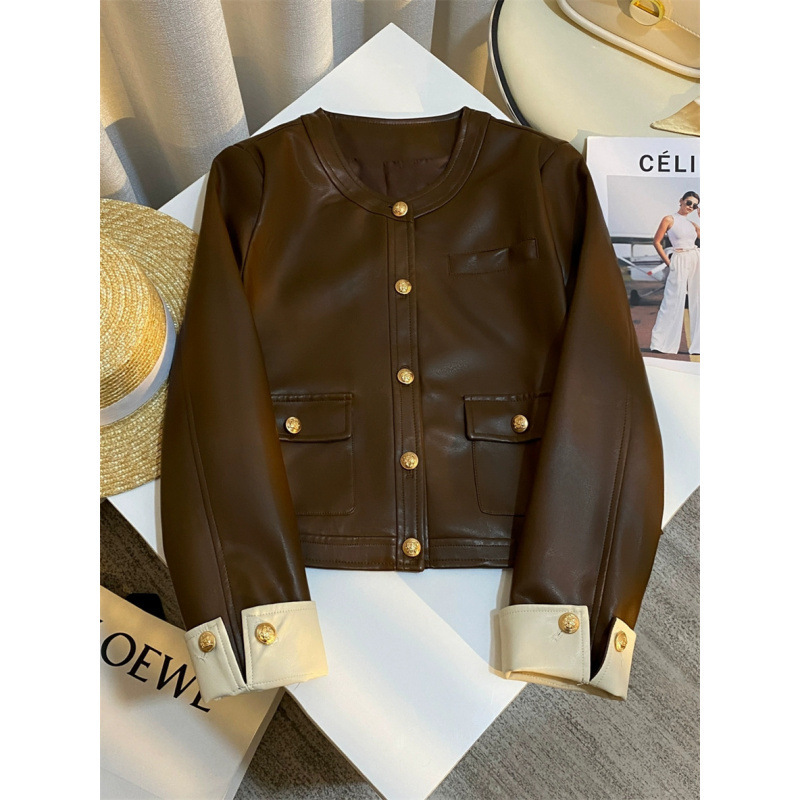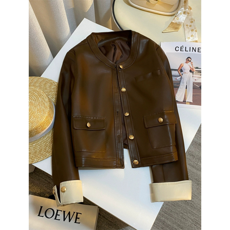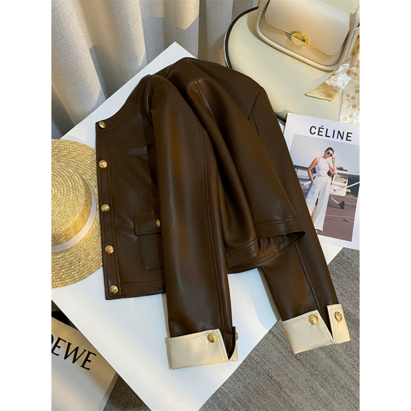 Главная страница > Куртка из искусственной кожи в винтажном стиле контрастных цветов, новый короткий модный байкерский топ для женщин.