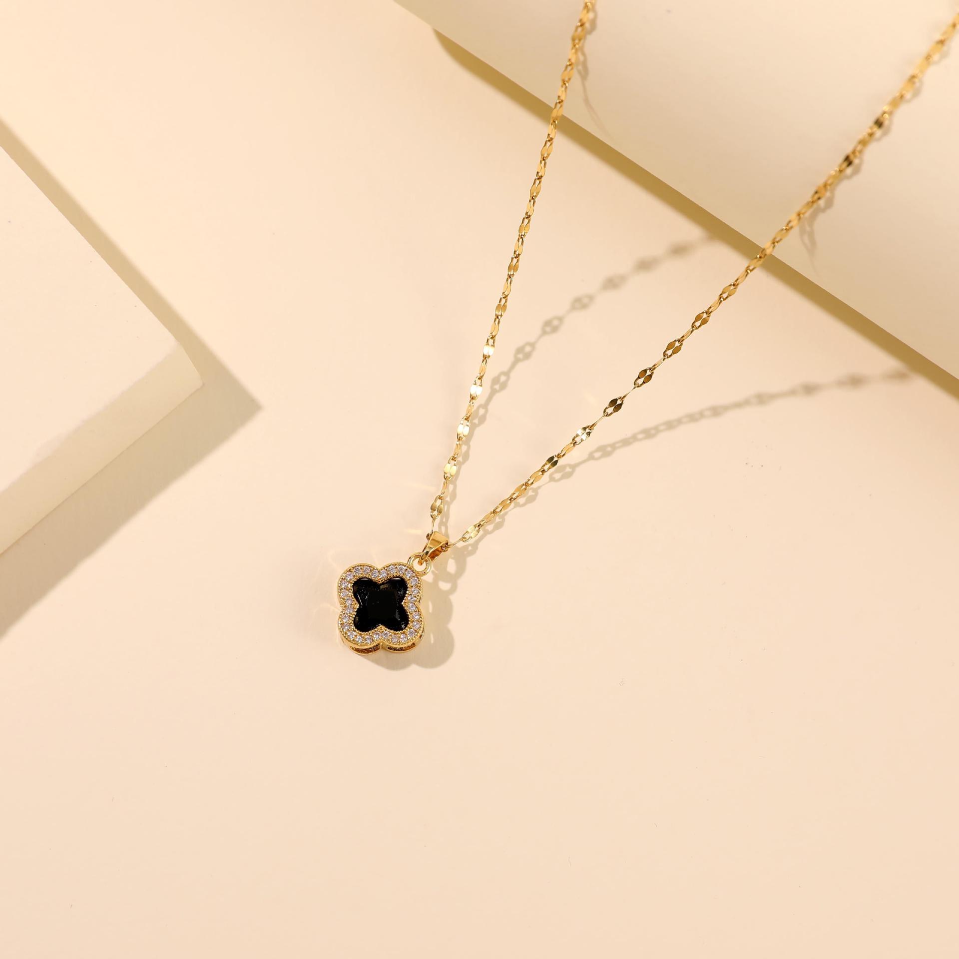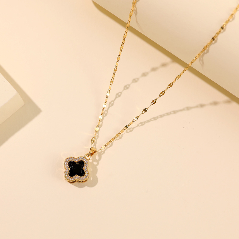Главная страница > Ожерелье для женщин, трансграничное японское и корейское модное ожерелье со стразами, четырехлистное лепестковое минималистское ожерелье из титановой стали, подвеска на ключицу, аксессуар, ювелирные изделия