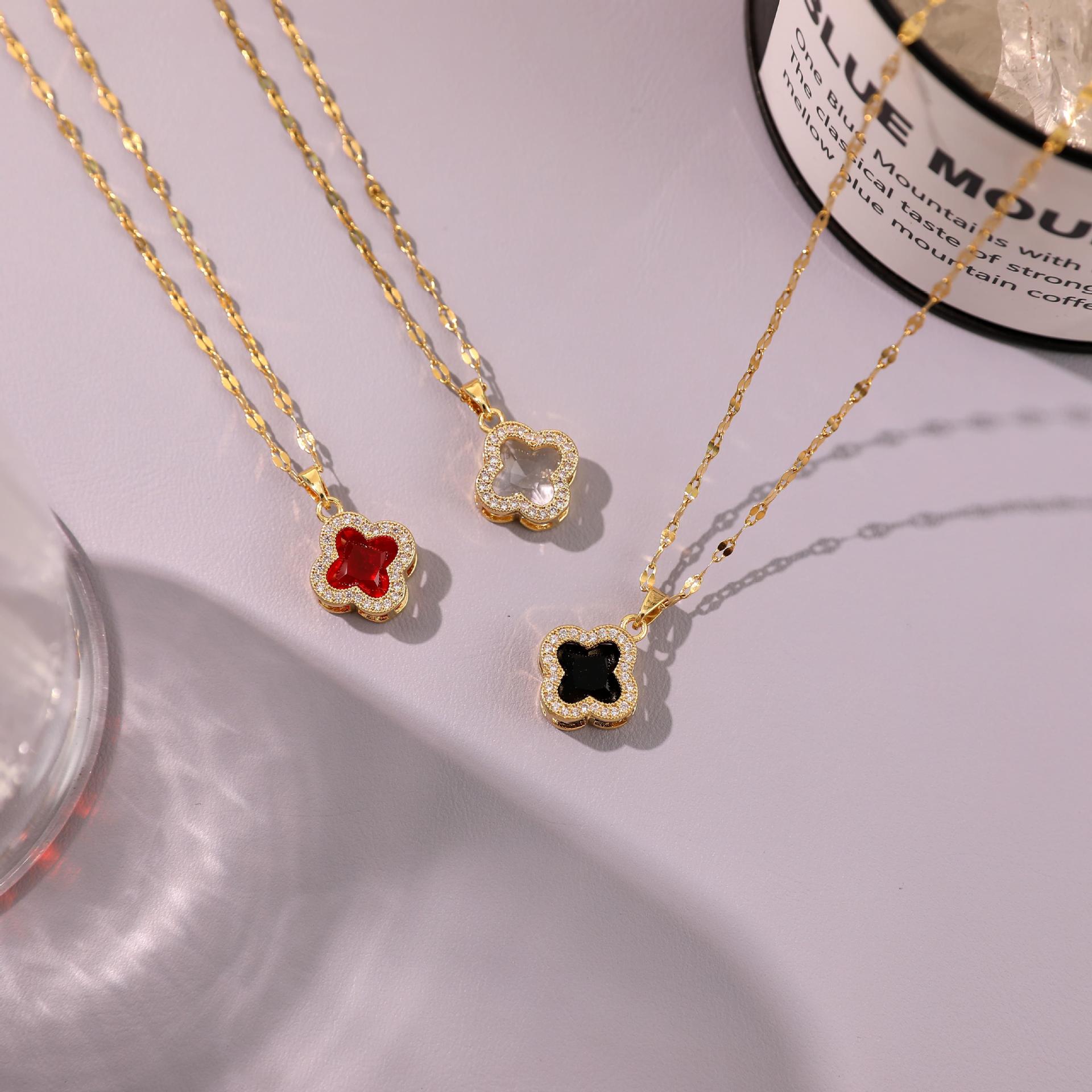 Ожерелье для женщин, трансграничное японское и корейское модное ожерелье со стразами, четырехлистное лепестковое минималистское ожерелье из титановой стали, подвеска на ключицу, аксессуар, ювелирные изделия