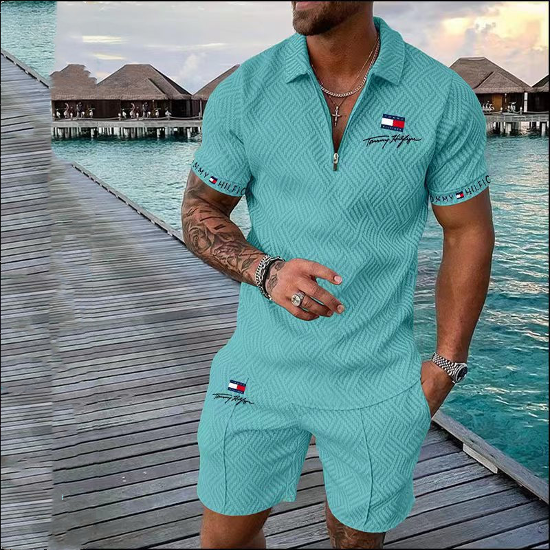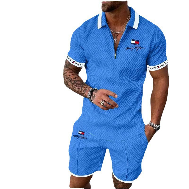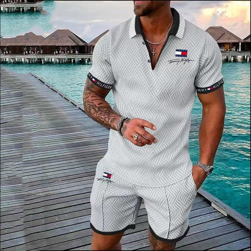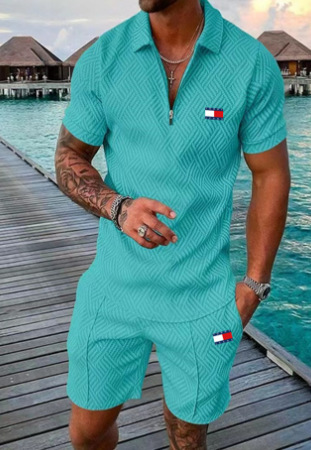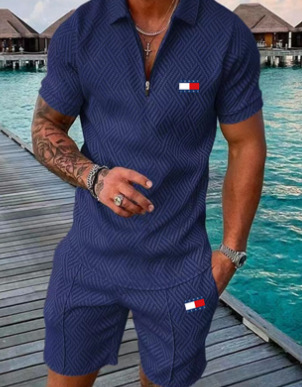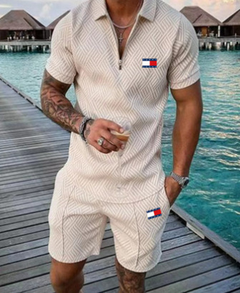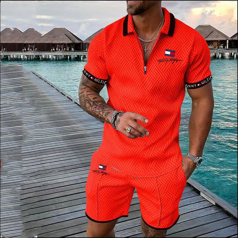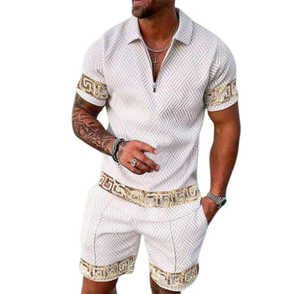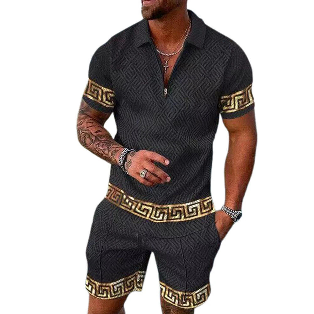 Главная страница > Летний новый стиль большой размер мужской набор с короткими рукавами 3D цифровой принт молния лацканная рубашка поло шорты спортивный костюм
