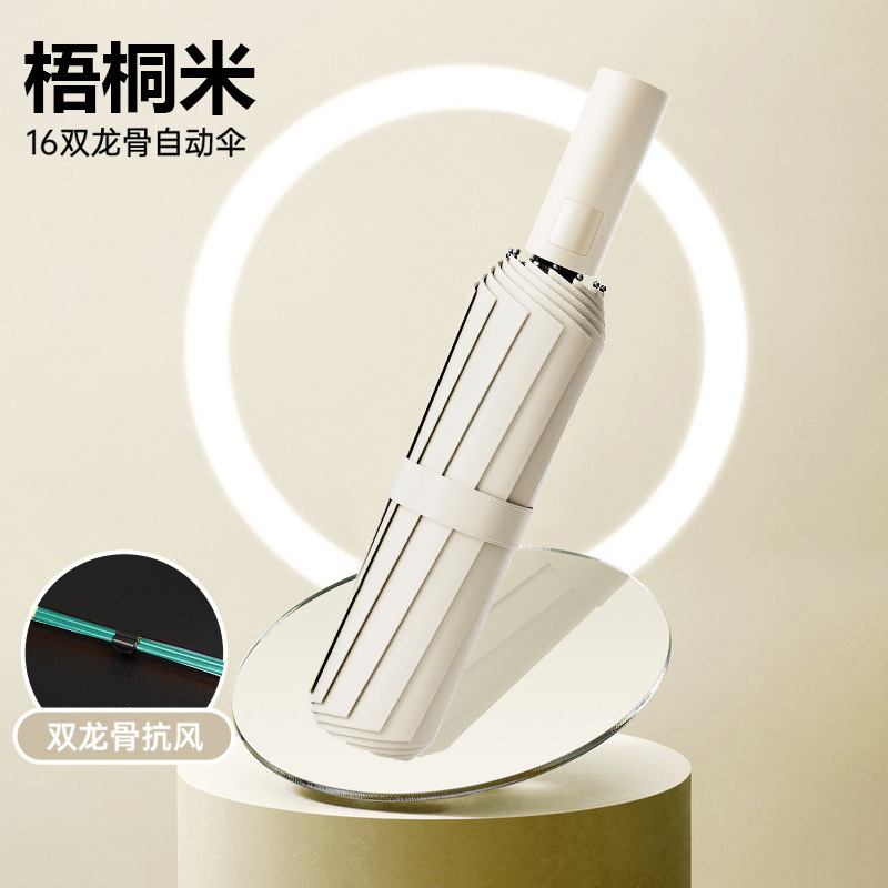 [Полностью автоматическая модель] Бежевый - стекловолокно 16 ребер + защита от дождя и солнца