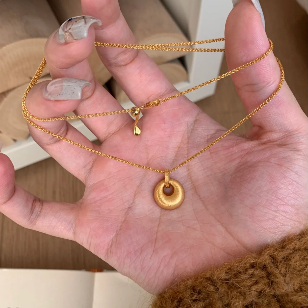 Новое золотое ожерелье с верблюжьей горбатостью, женственное, модное, легкое роскошное матовое кулон, изысканная высококачественная цепочка на ключицу, подарок на День святого Валентина