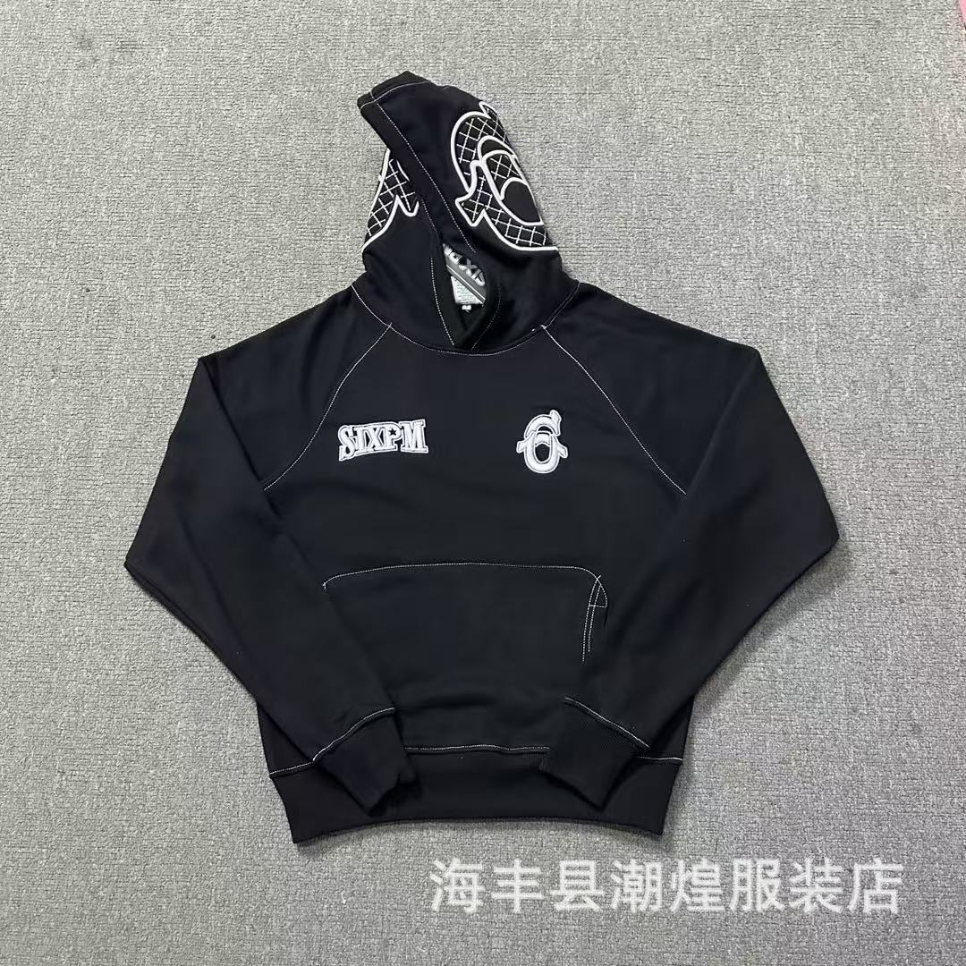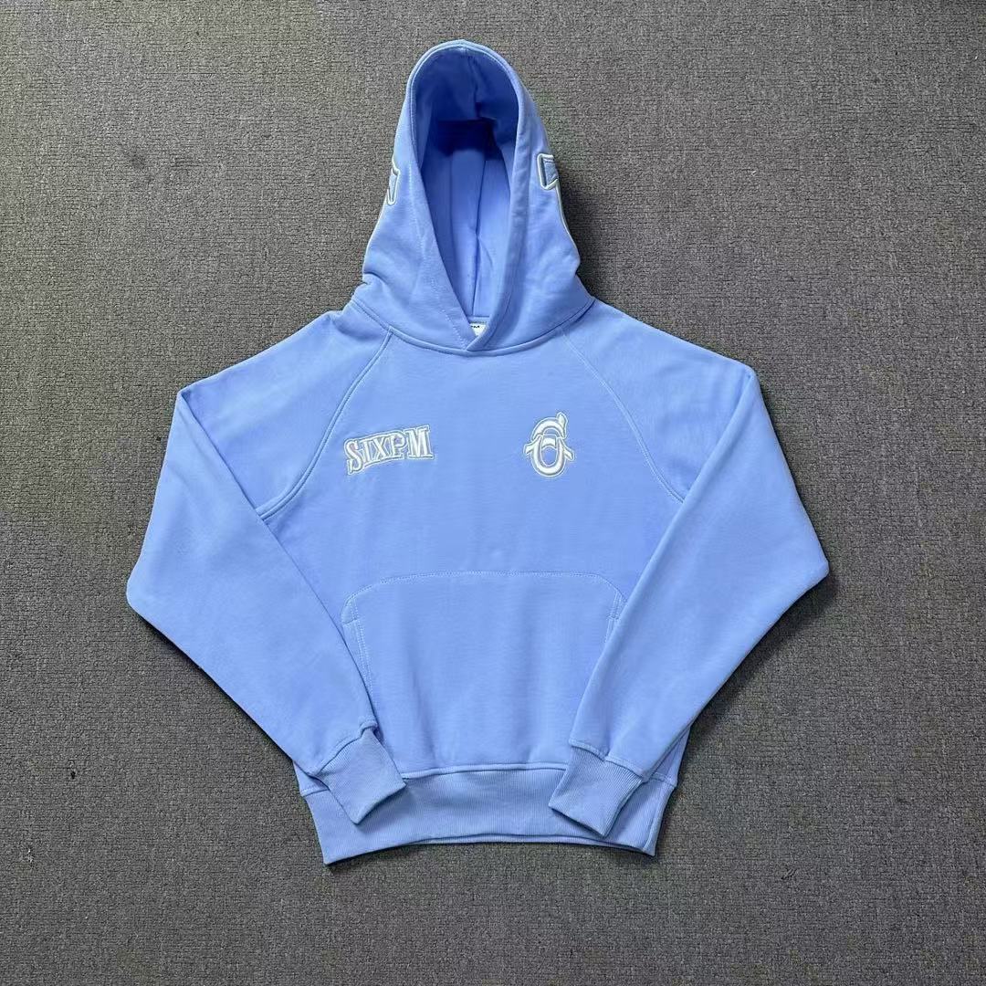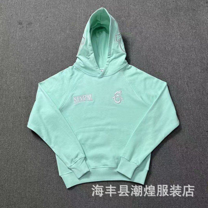 Мужской костюм: модный бренд 6PM Drill, вышитые буквы, хип-хоп, флисовая подкладка, толстовка с капюшоном и брюки, для трансграничной торговли.