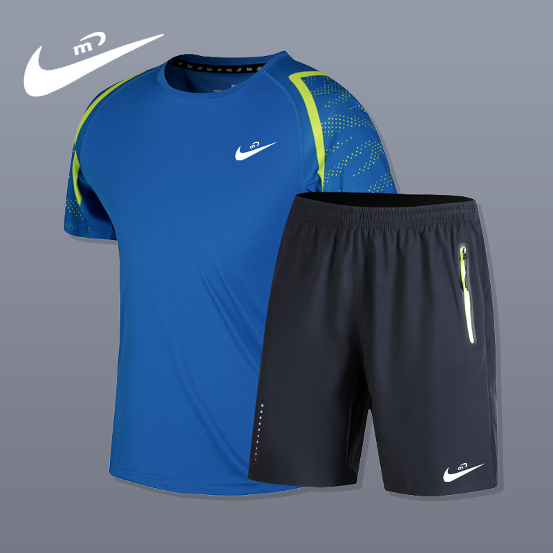 Мужской летний спортивный костюм Футболка с короткими рукавами Мужские повседневные свободные быстросохнущие шорты больших размеров Комплект из двух предметов
