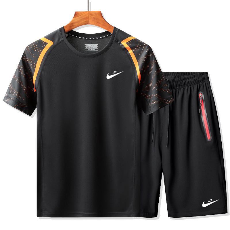 Главная страница > Мужской летний спортивный костюм Футболка с короткими рукавами Мужские повседневные свободные быстросохнущие шорты больших размеров Комплект из двух предметов