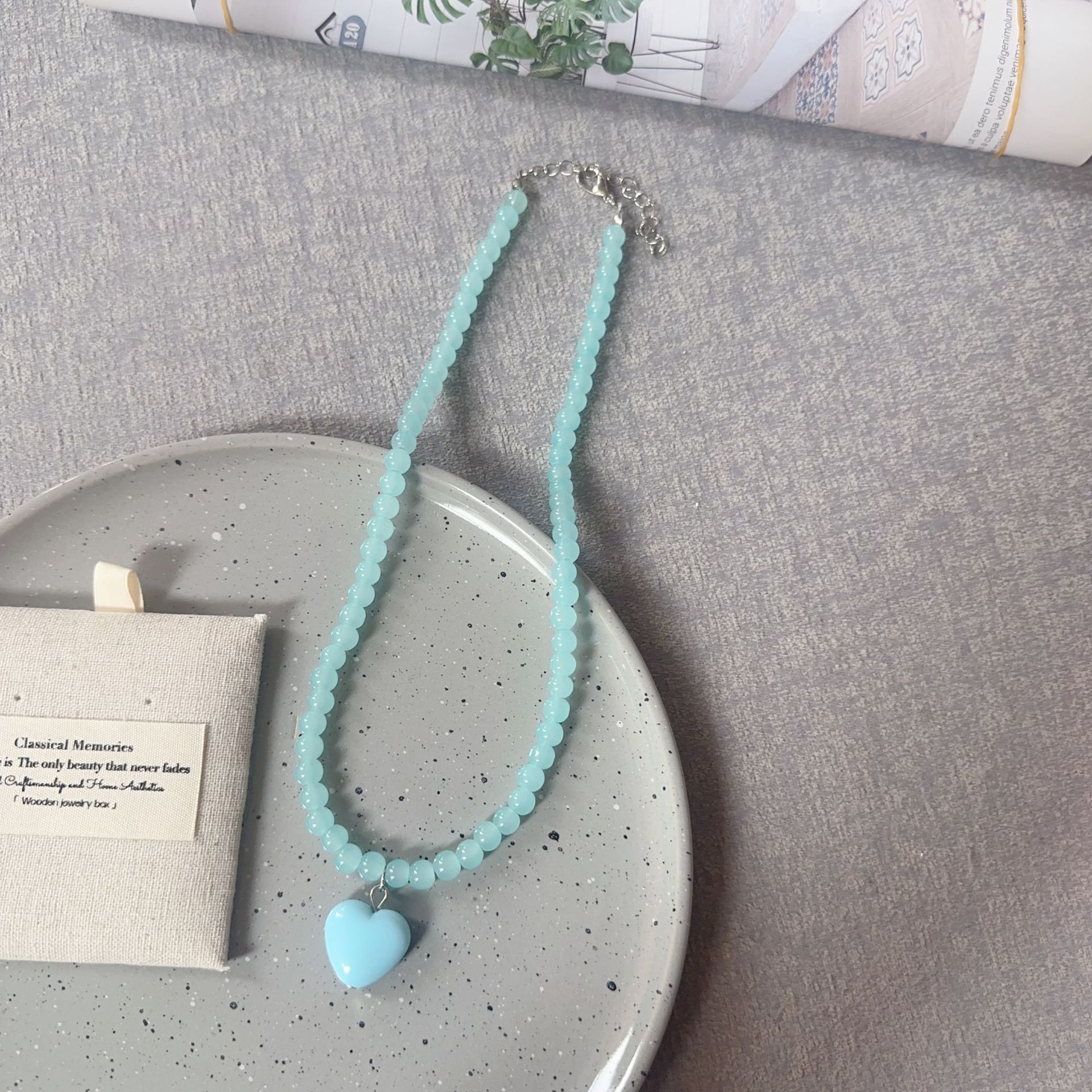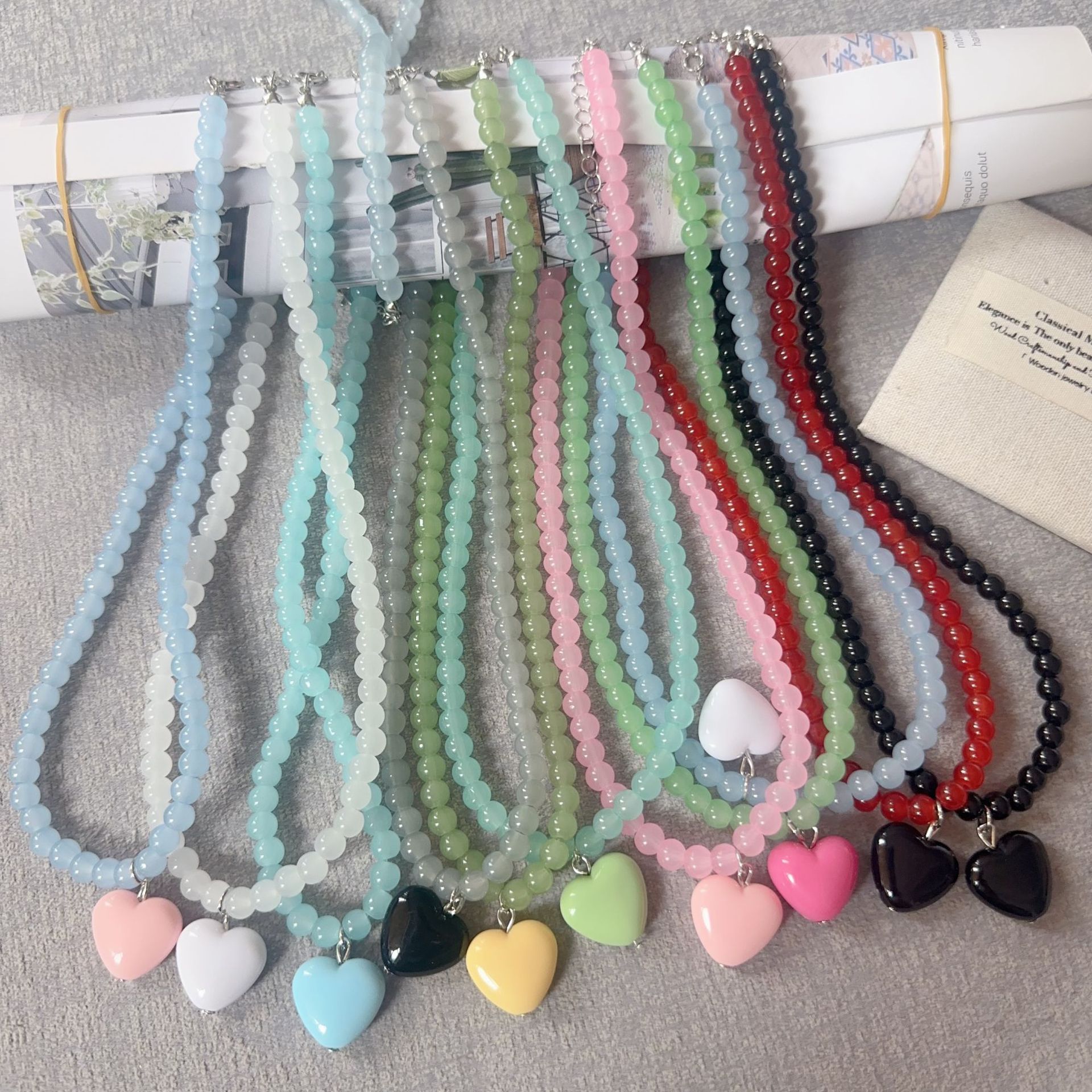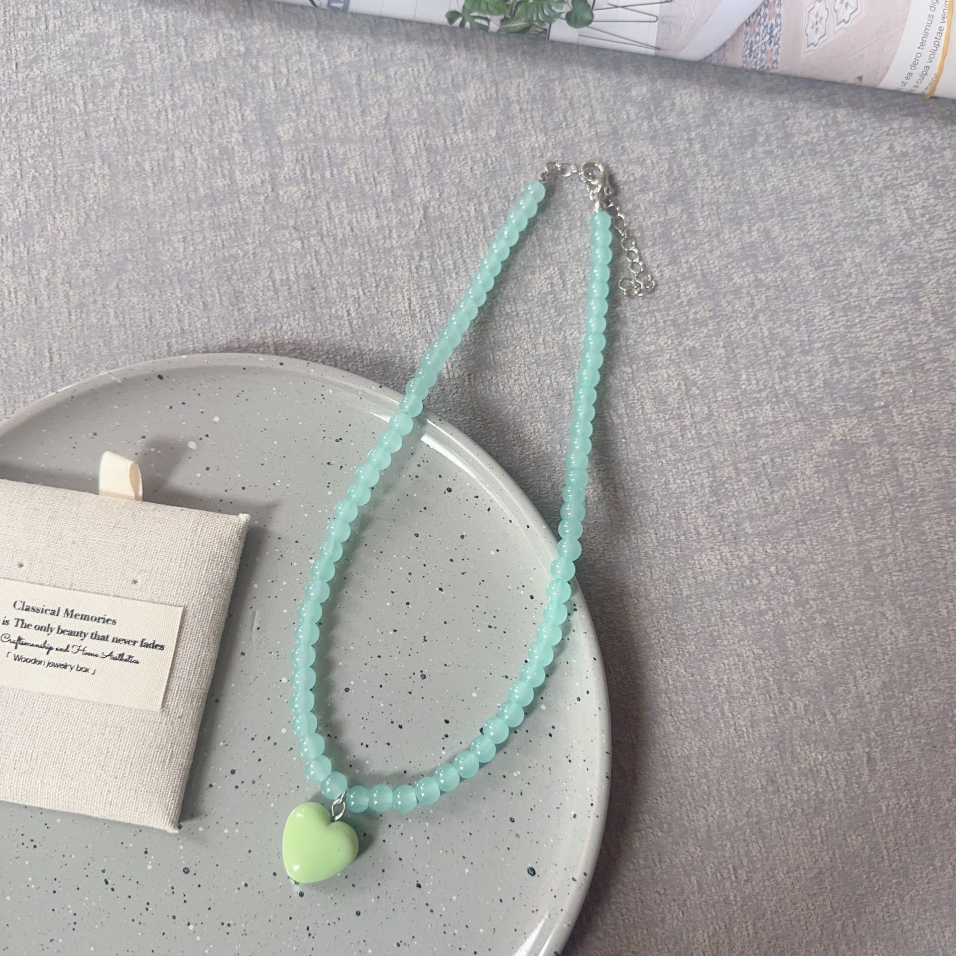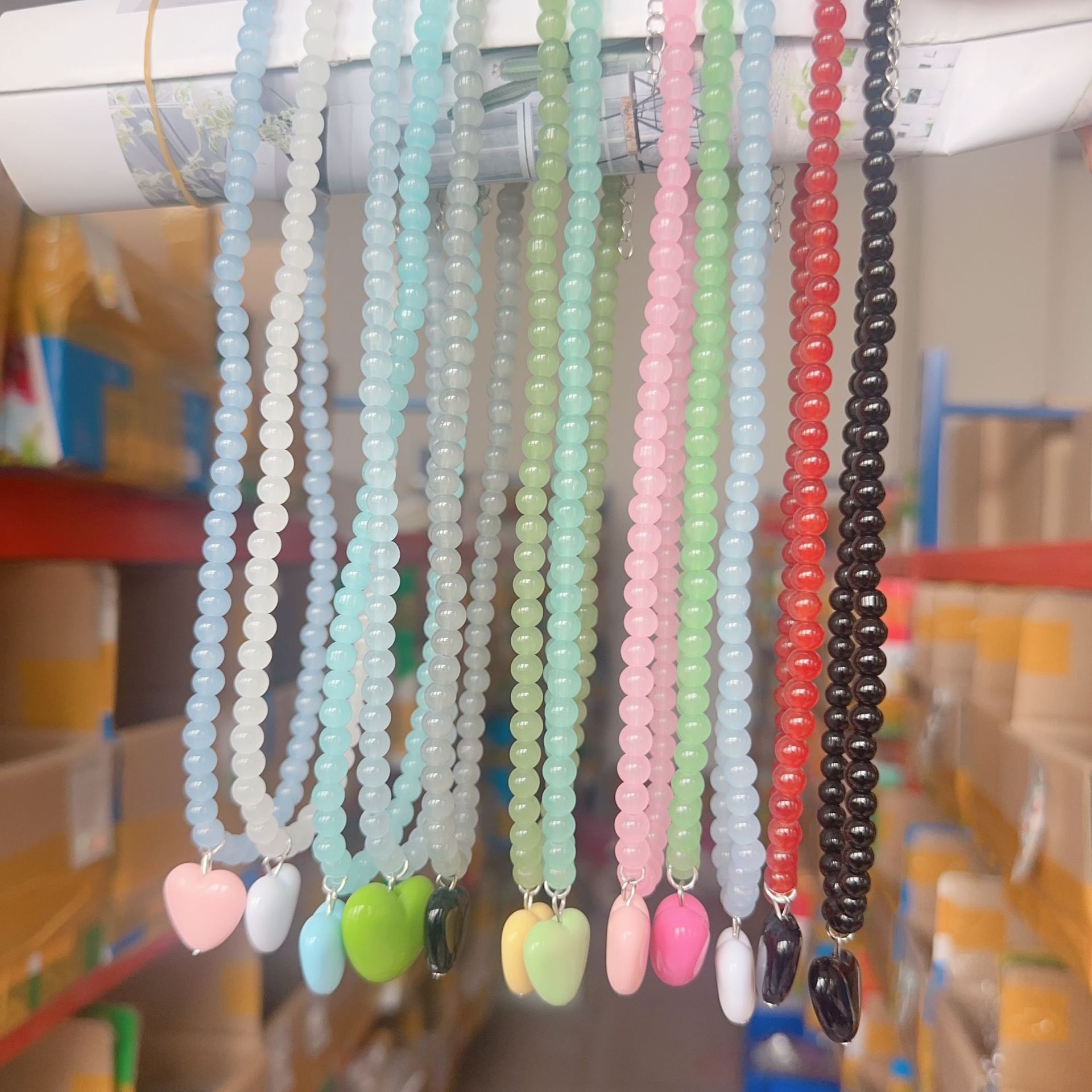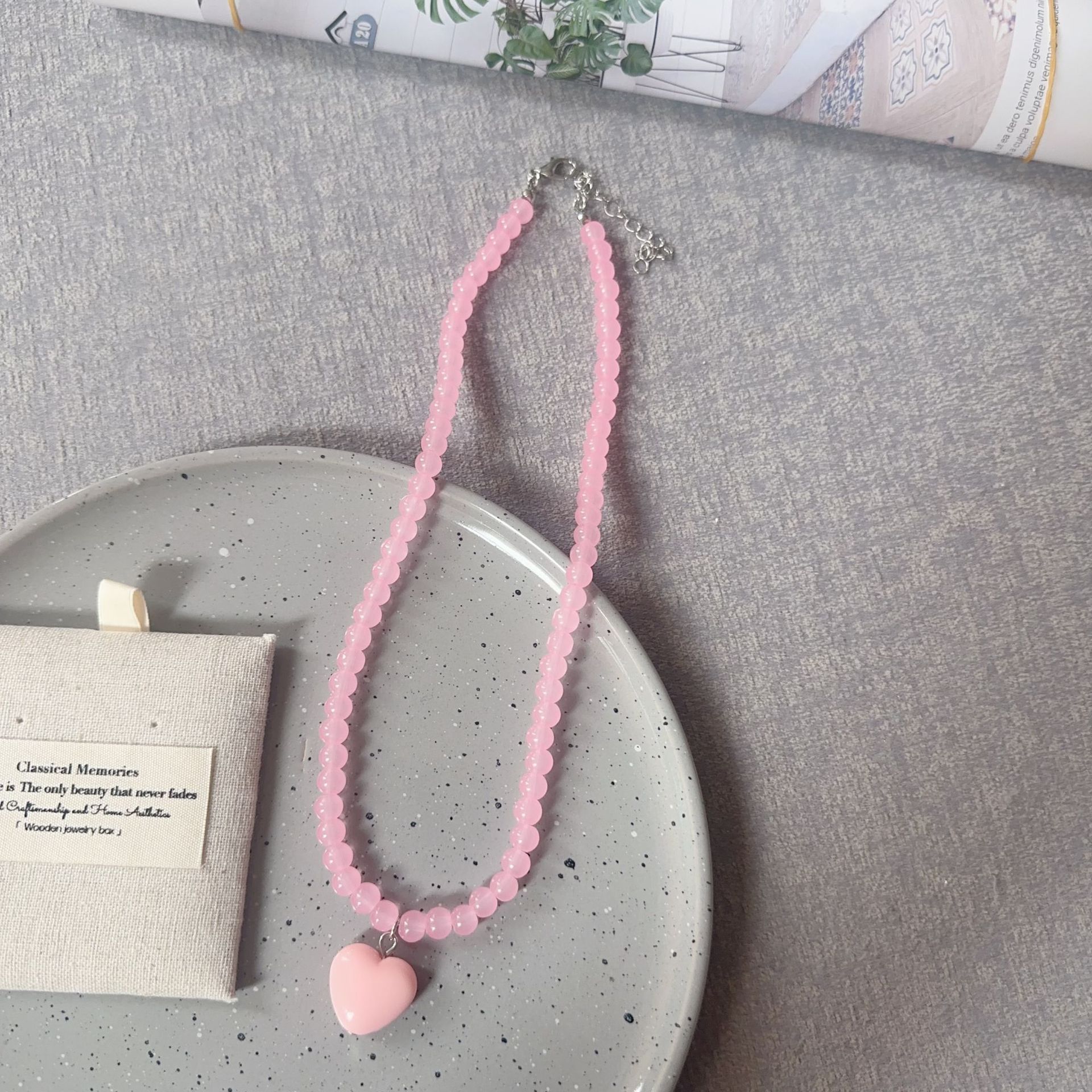 Главная страница > 2025 новое ожерелье с бусинами в конфетных цветах, женский нишевый дизайн, свежий и модный универсальный кулон в форме сердца, цепочка на ключицу