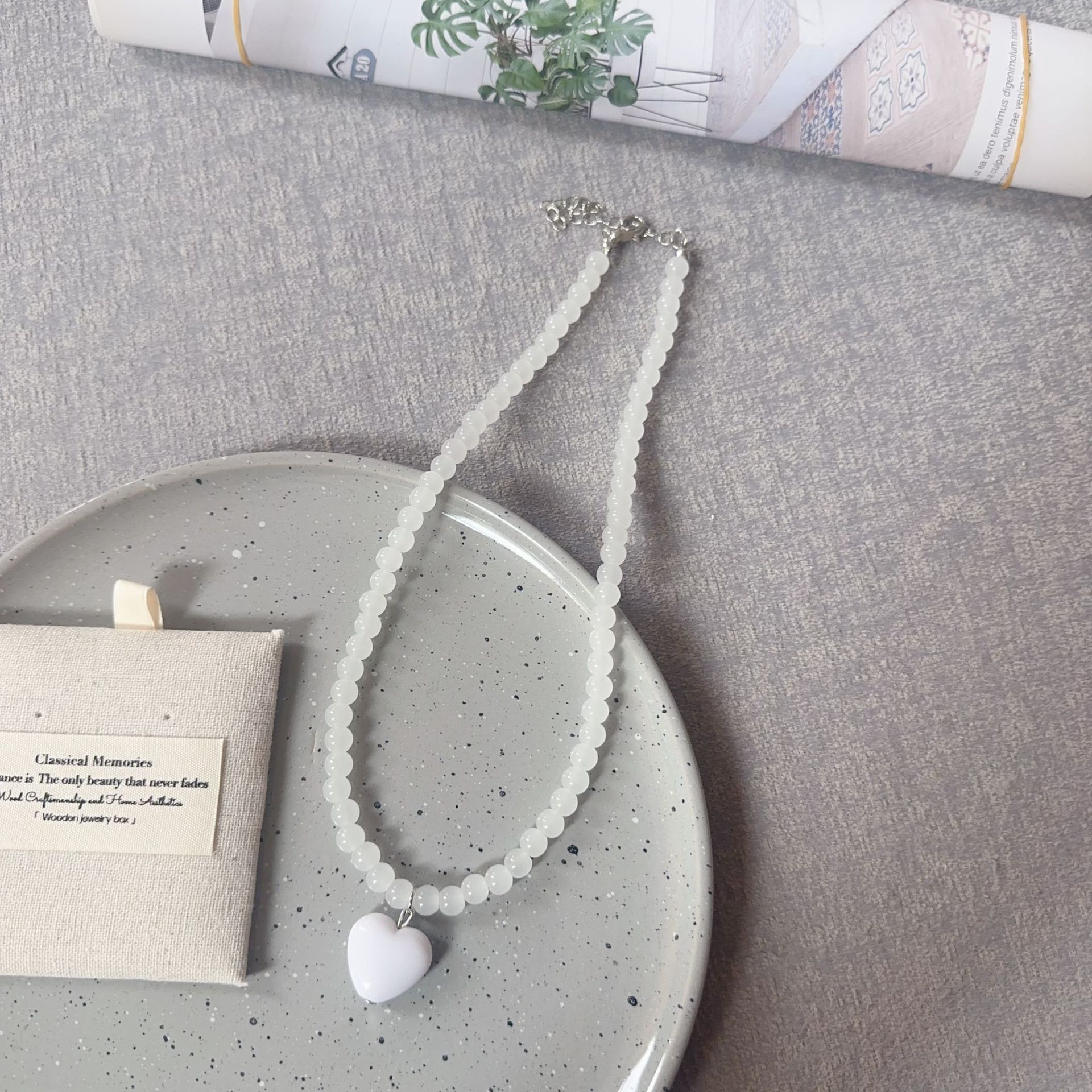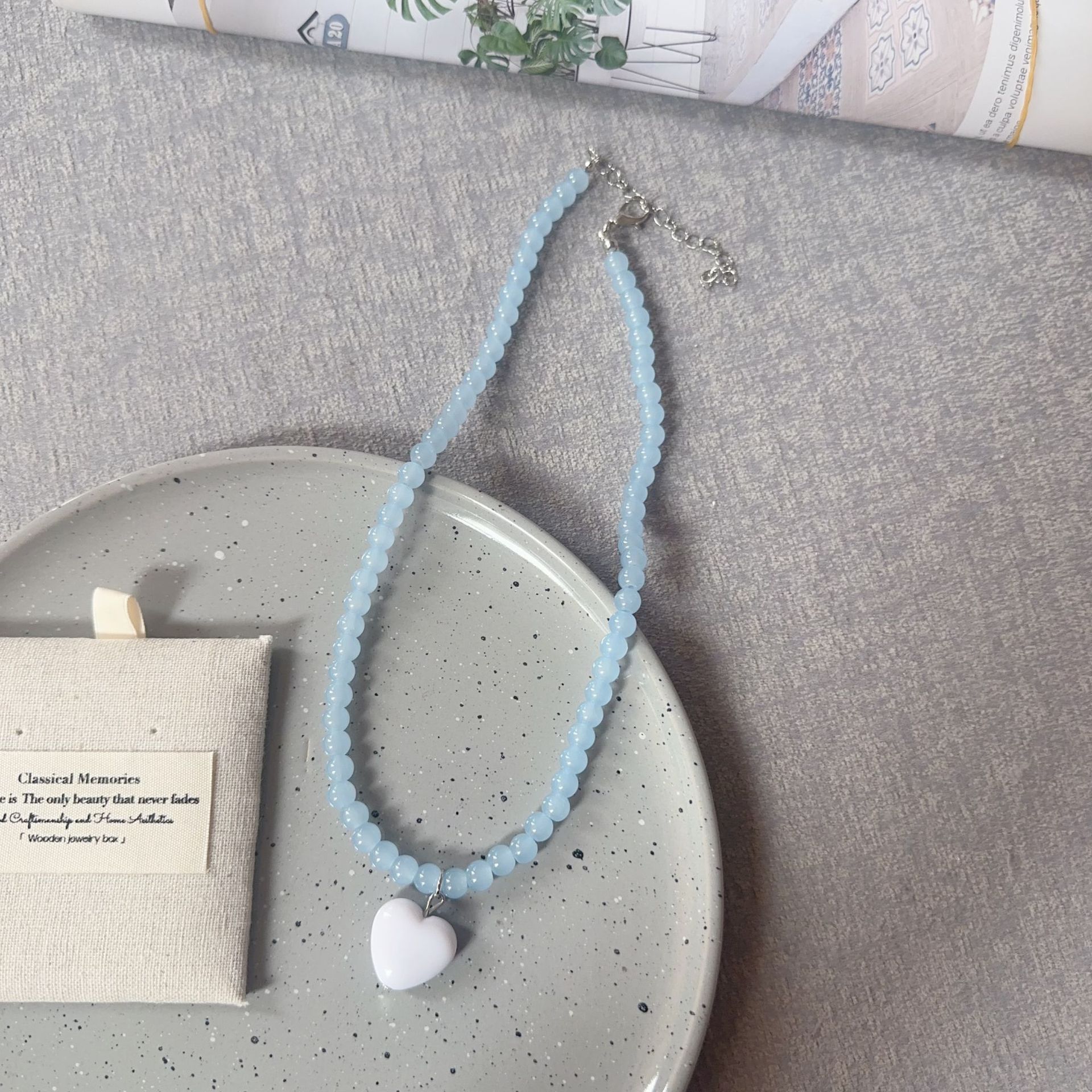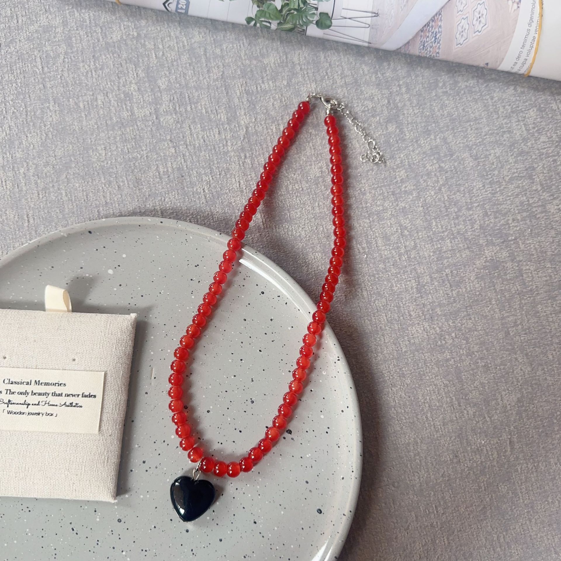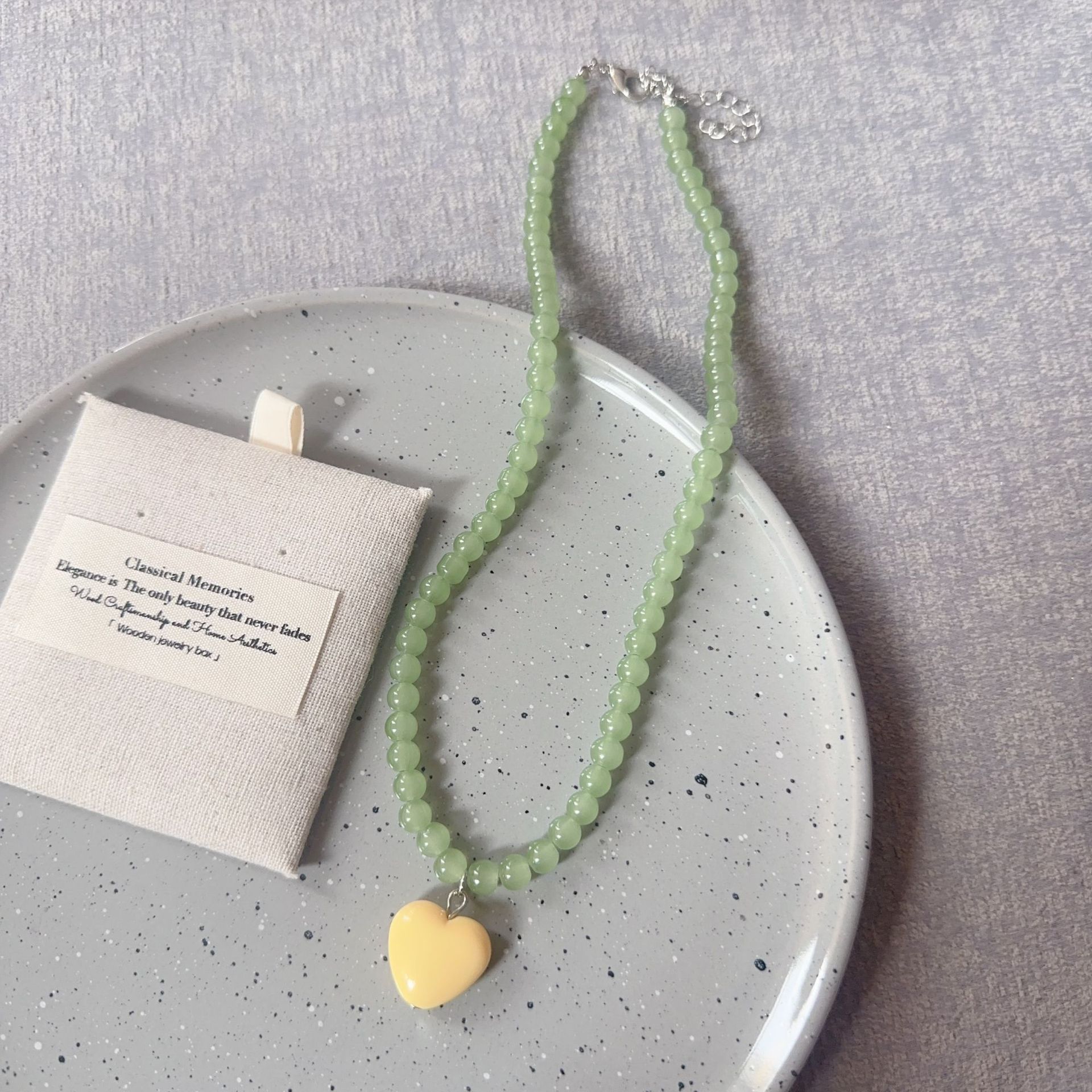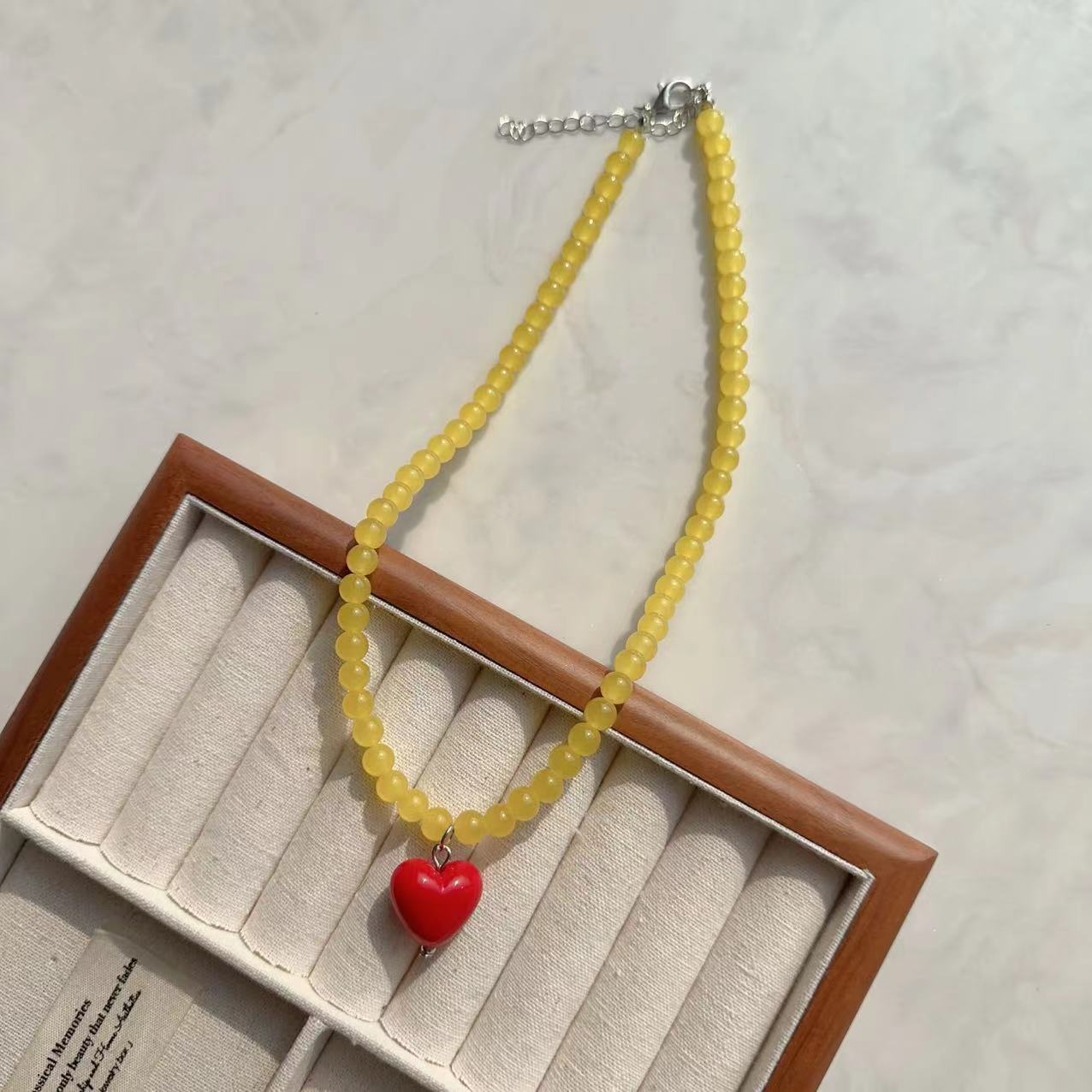 Главная страница > 2025 новое ожерелье с бусинами в конфетных цветах, женский нишевый дизайн, свежий и модный универсальный кулон в форме сердца, цепочка на ключицу