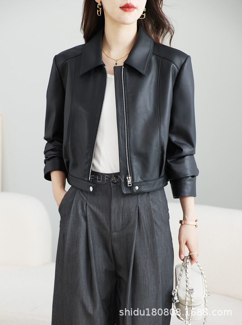 Главная страница > Haining весна и осень новая женская молния мотоциклетная кожаная одежда с лацканом черная овчинная кожаная куртка короткая кожаная куртка