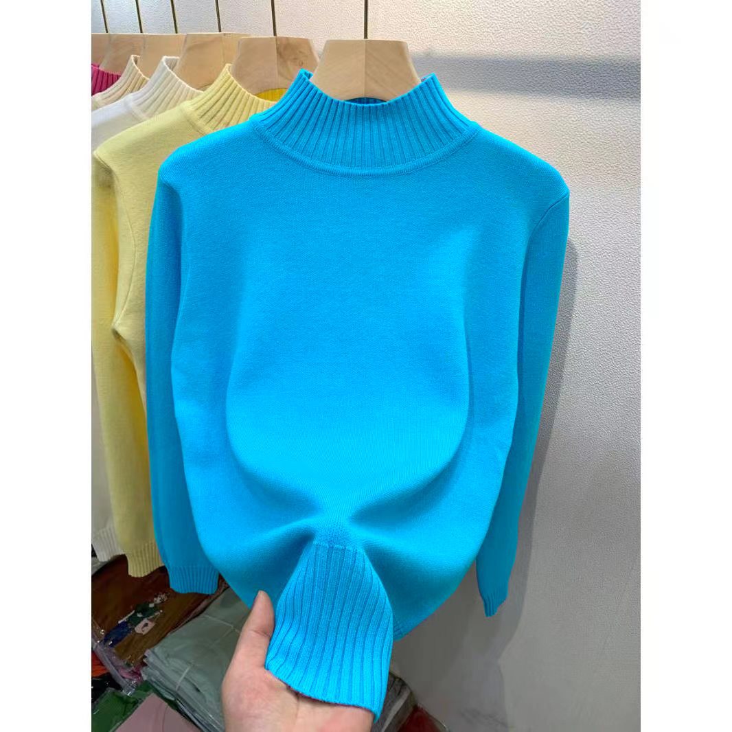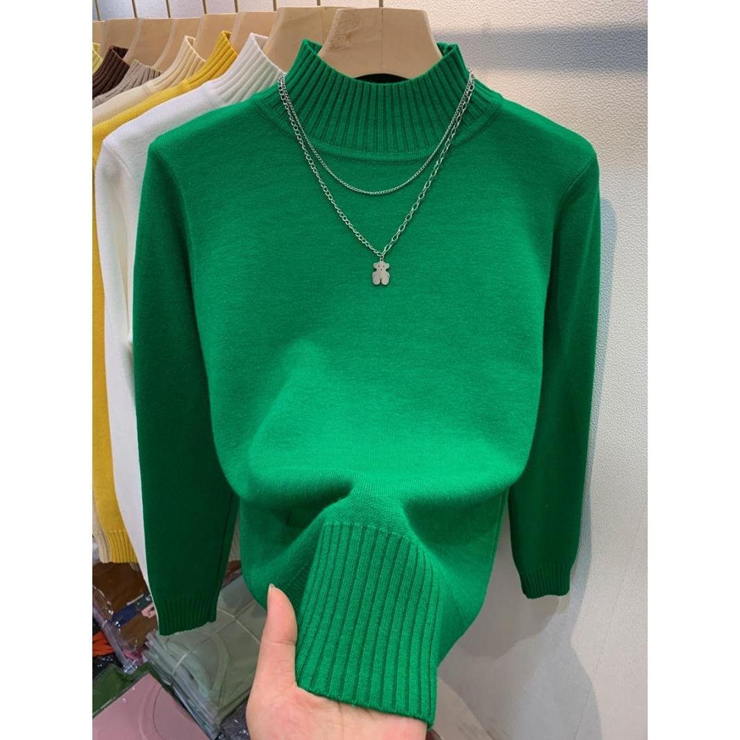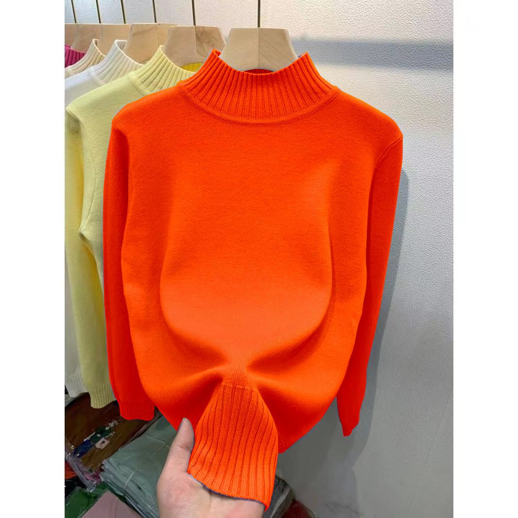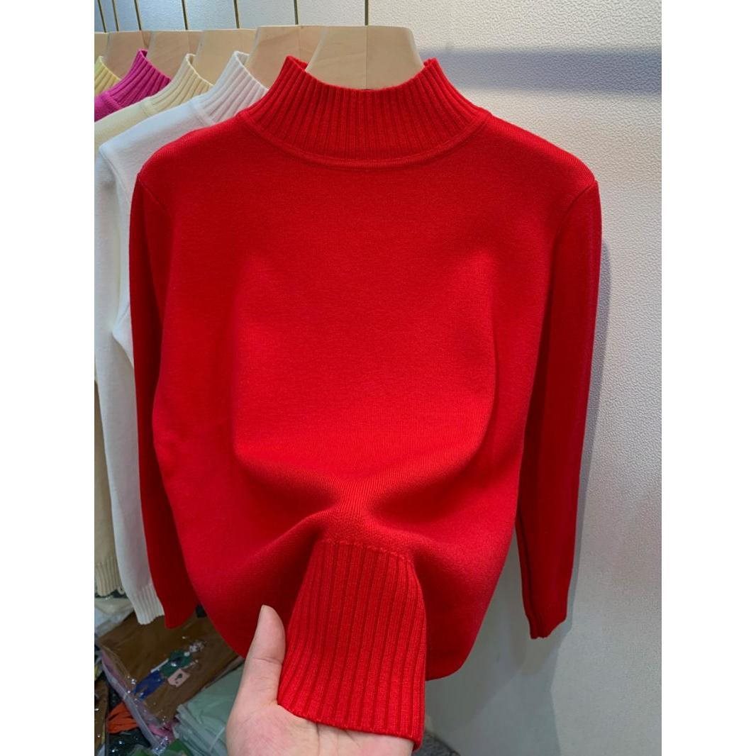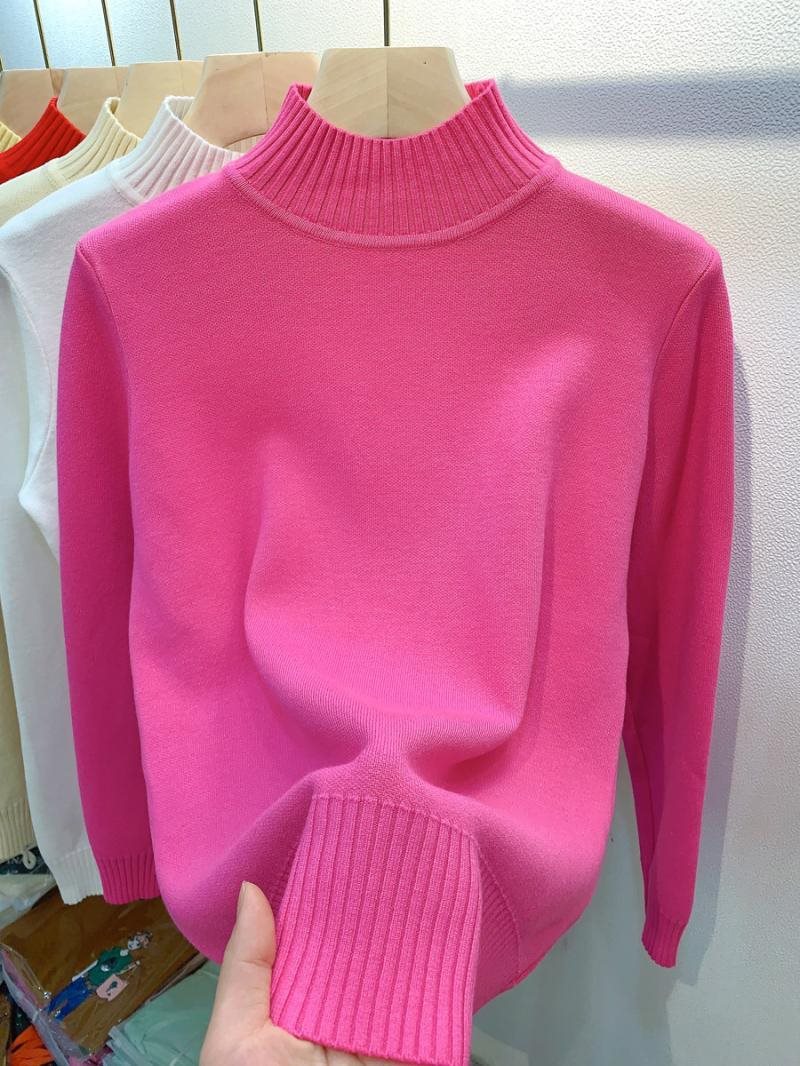 Главная страница > Розово-красный утолщенный трикотаж с длинными рукавами, осенне-зимний трикотаж, трикотаж с полугольфом в западном стиле, женский верхний топ