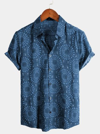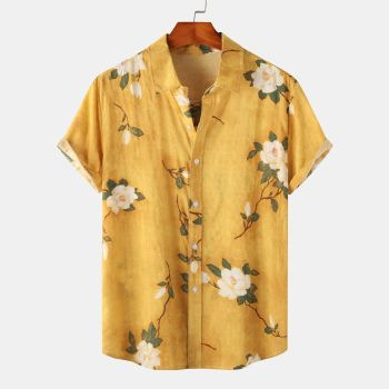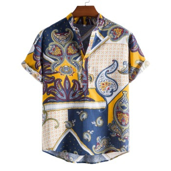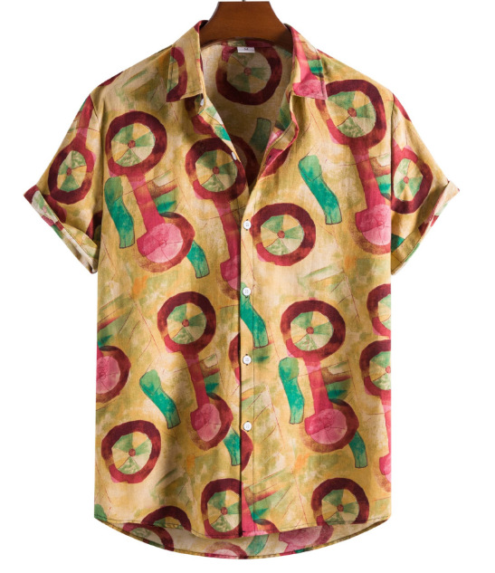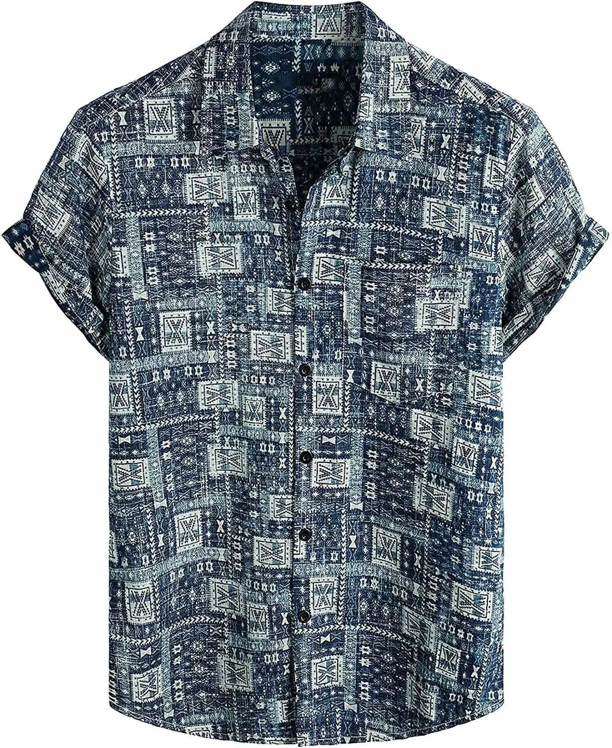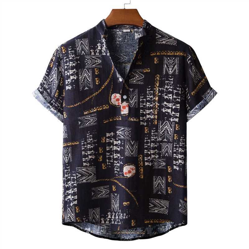 Cross-border 2024, весна и лето, новый стиль, короткая рубашка с 7 пуговицами, мужские топы, повседневные рубашки в пляжном стиле, дышащие топы