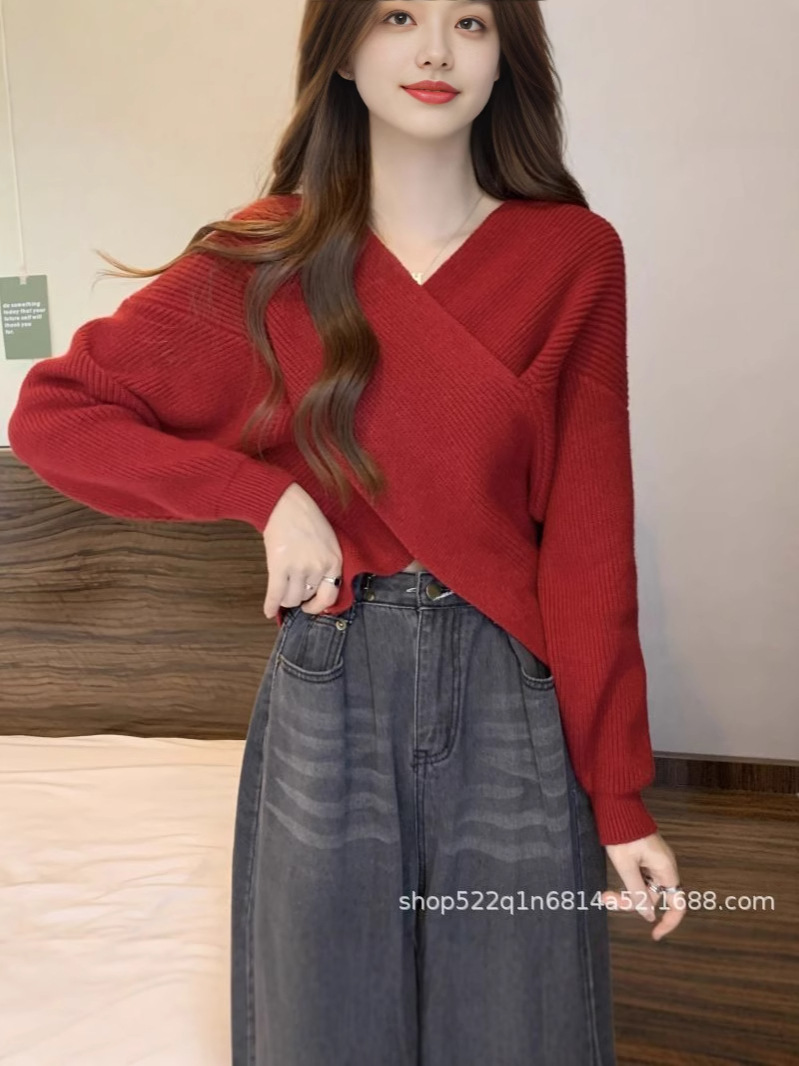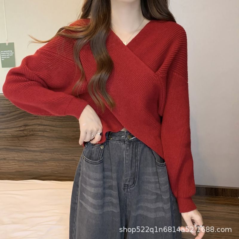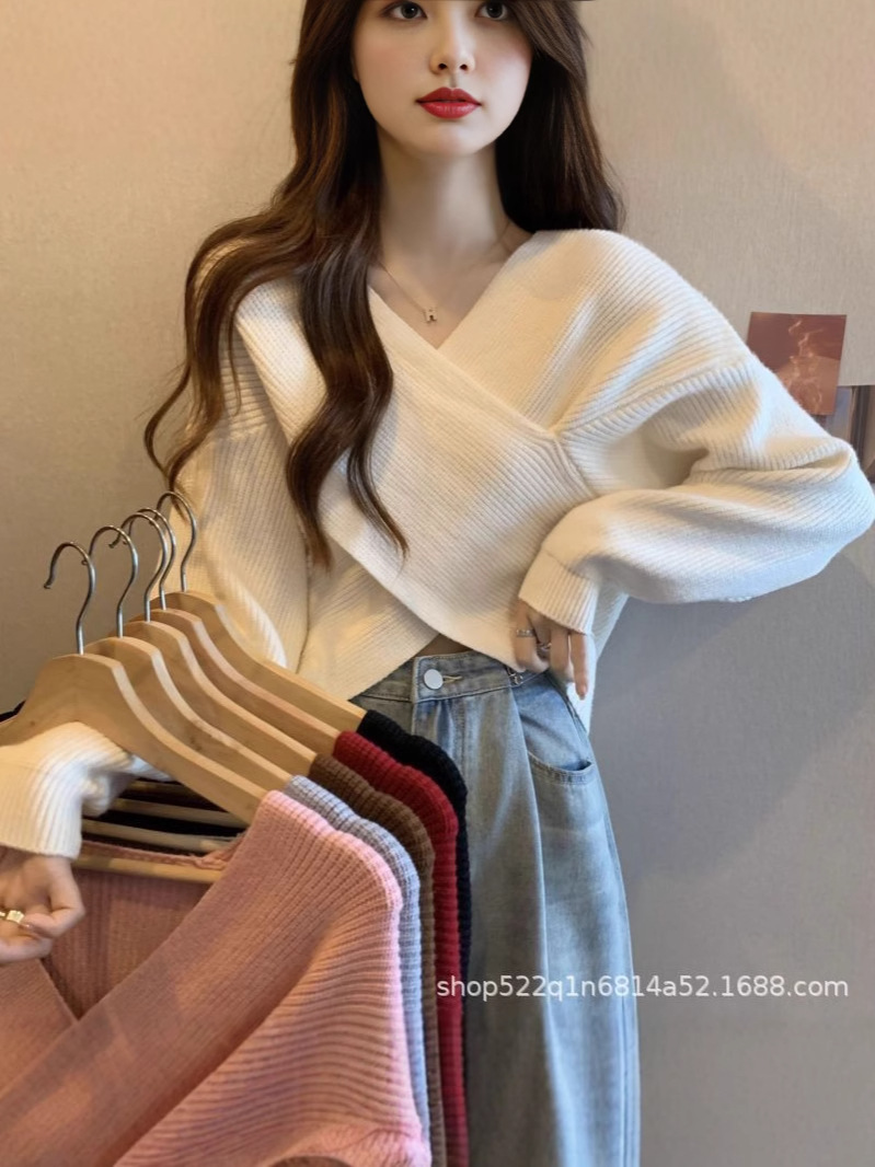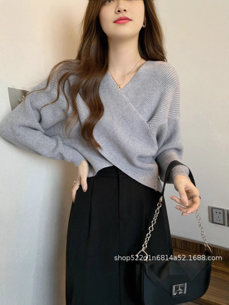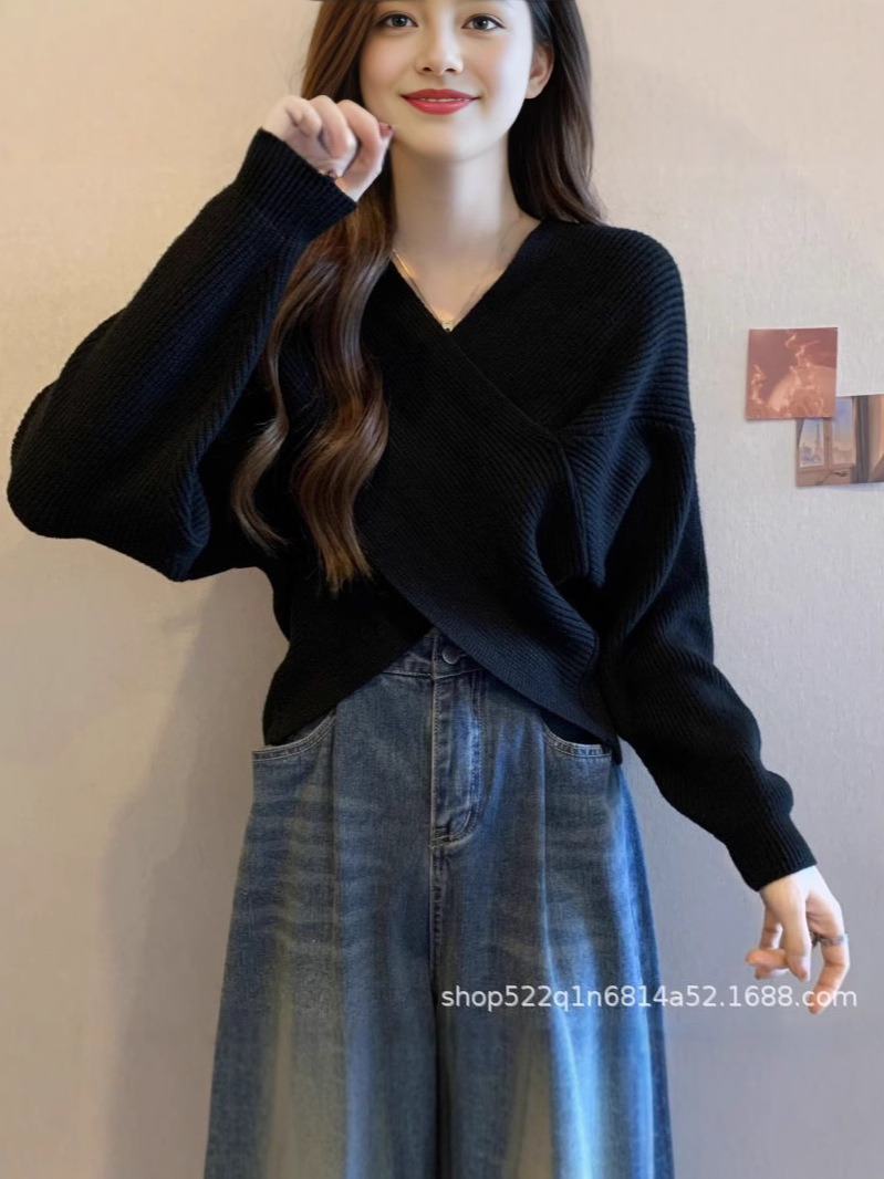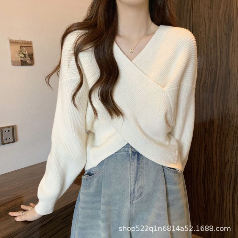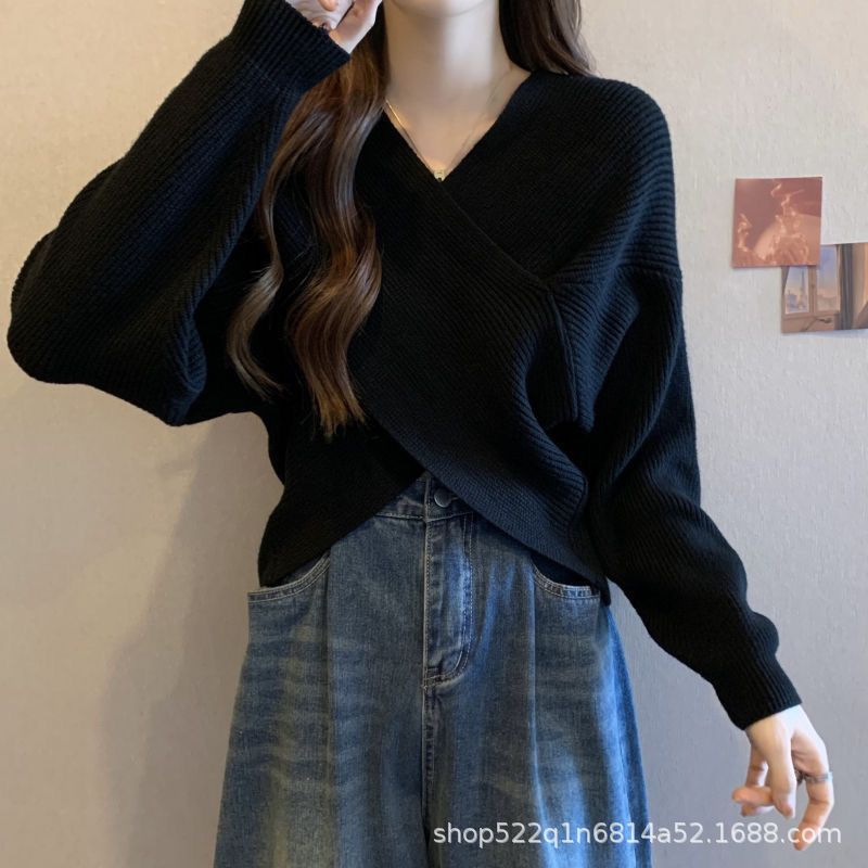 Главная страница > Нерегулярный кросс-дизайн с наконечником свитера с вьюком женский свободный ленивый свитер осенью и зимой.