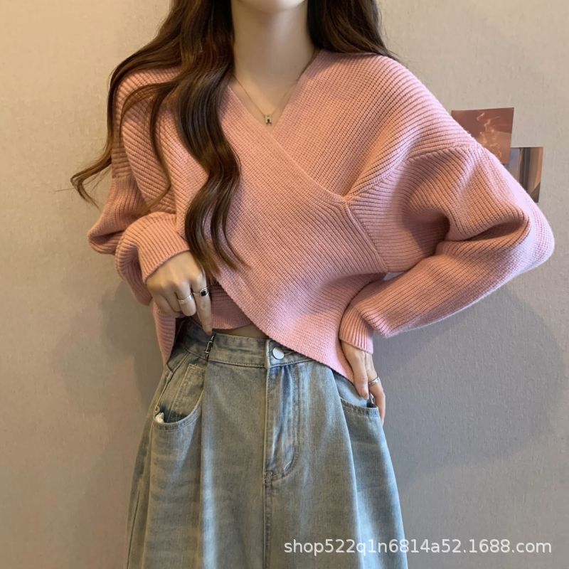 Нерегулярный кросс-дизайн с наконечником свитера с вьюком женский свободный ленивый свитер осенью и зимой.