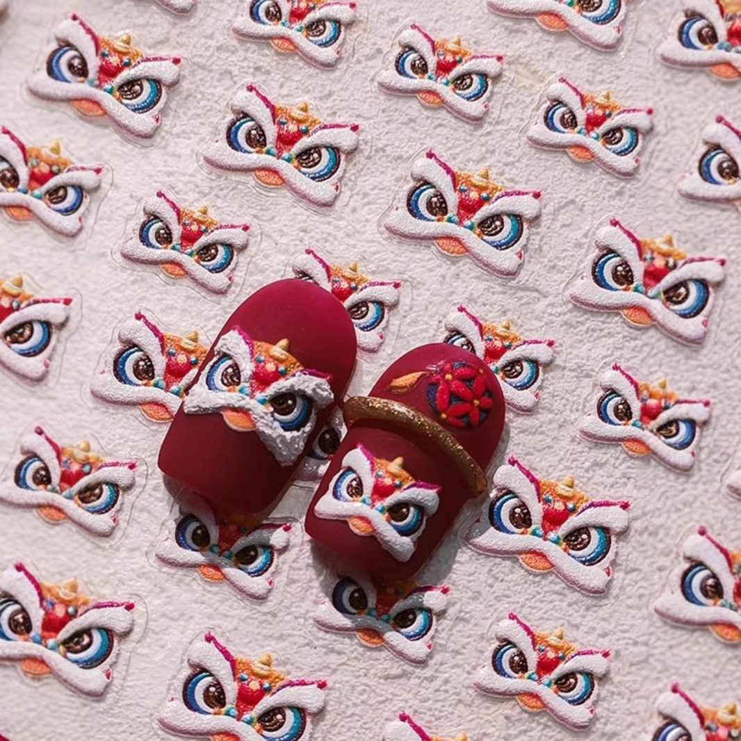 Взрывное новое ремесло Пробуждение льва Наклейка ногтей Новый год Ретро ins Национальный Ветер Серия Пробуждение льва рельефная трехмерная наклейка для ногтей