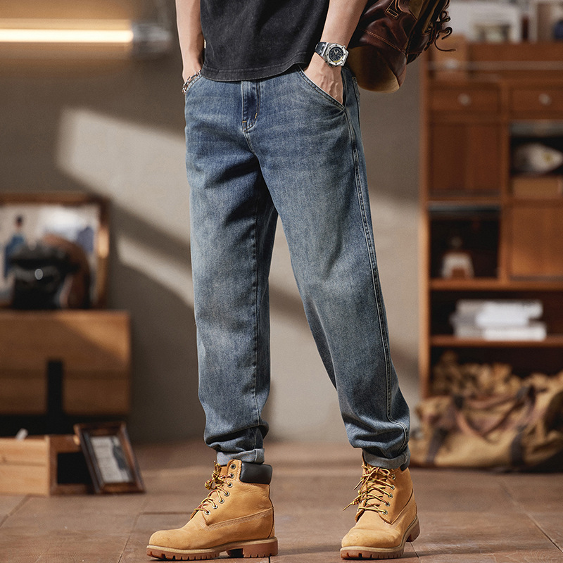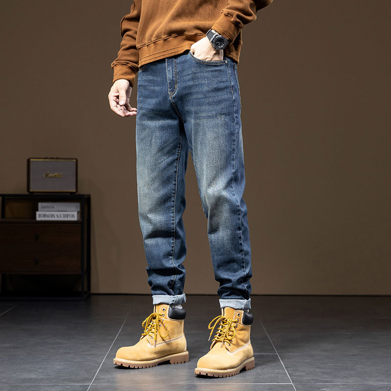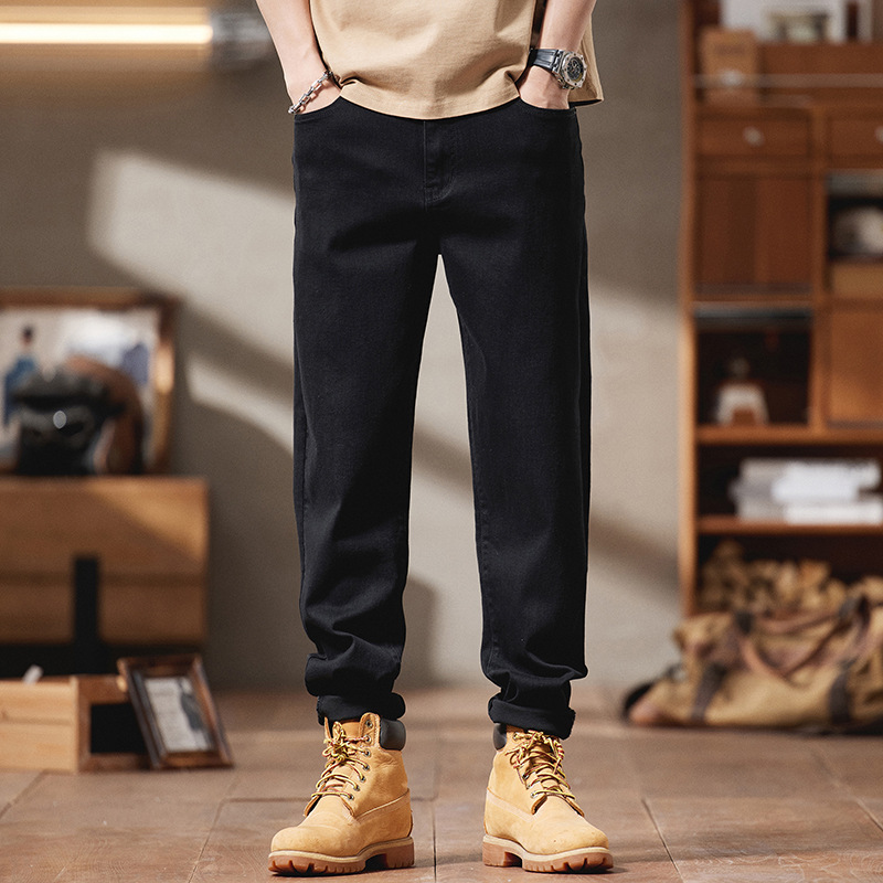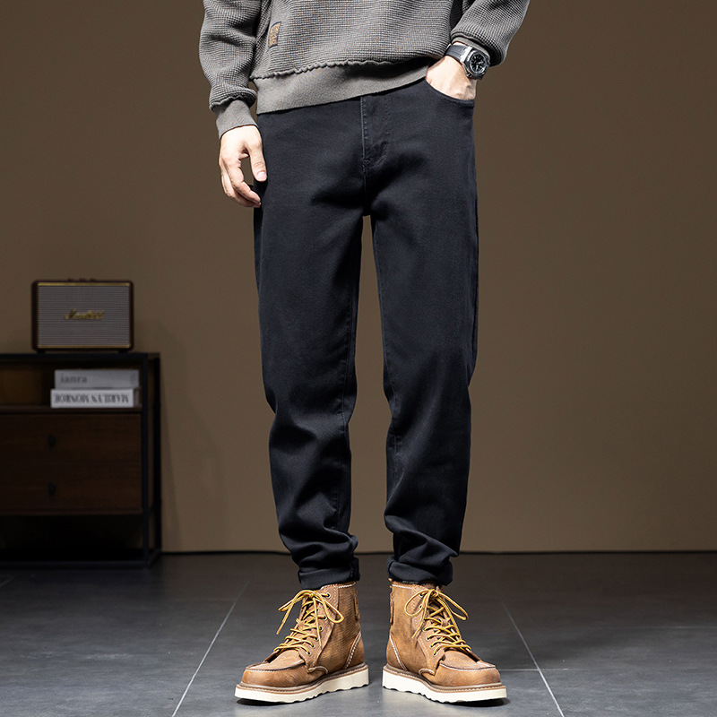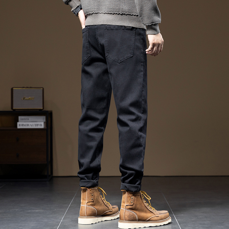 Главная страница > 2024 осенние и зимние джинсы для мальчиков мужские эластичные черные брюки шаровары японские узкие длинные брюки большого размера