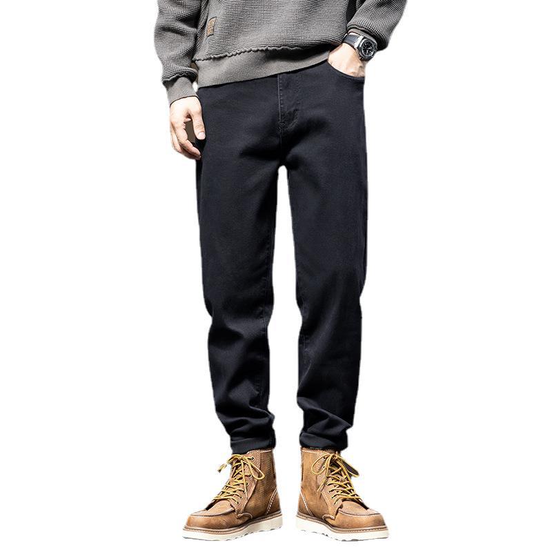 2024 осенние и зимние джинсы для мальчиков мужские эластичные черные брюки шаровары японские узкие длинные брюки большого размера