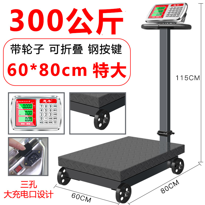 300kg Весы на колесах 60*80, очень большой большой дисплей с тремя отверстиями и черными символами