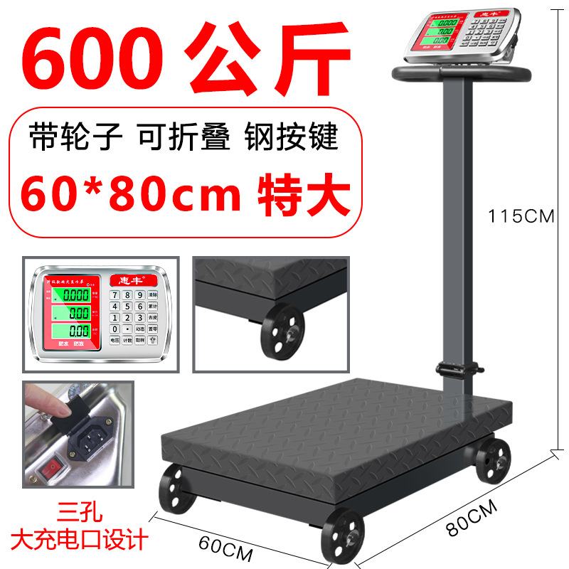 600kg колесные весы 60*80 очень большие (зарядка с тремя отверстиями) красная буква