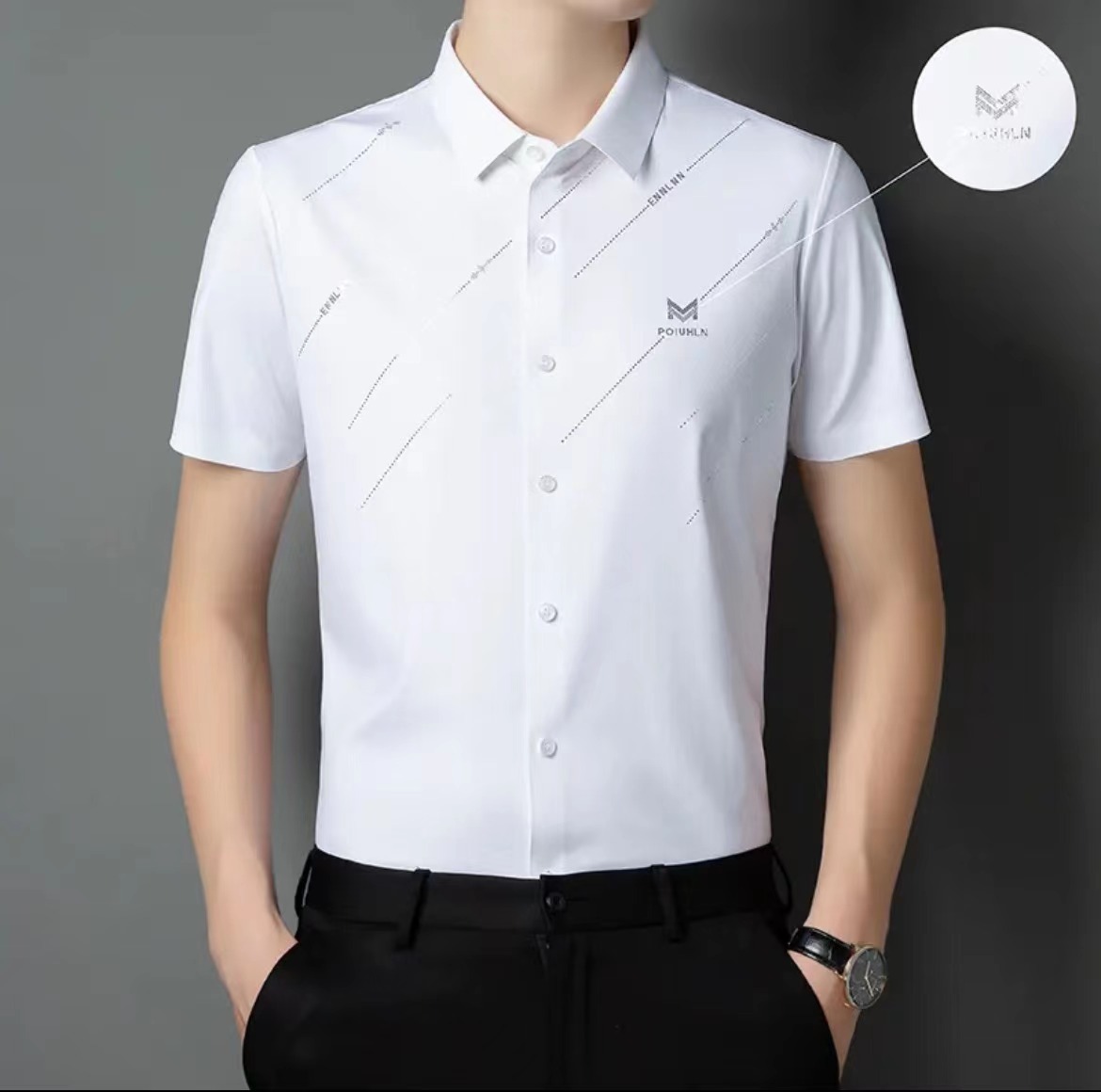 Главная страница > Shake Voice Live Dumeng Мужская одежда Та же рубашка Летняя Новая мужская рубашка с коротким рукавом Без глажки Высокоэластичная