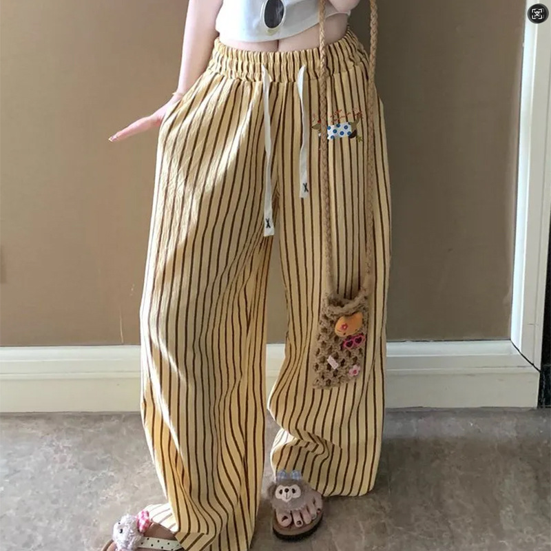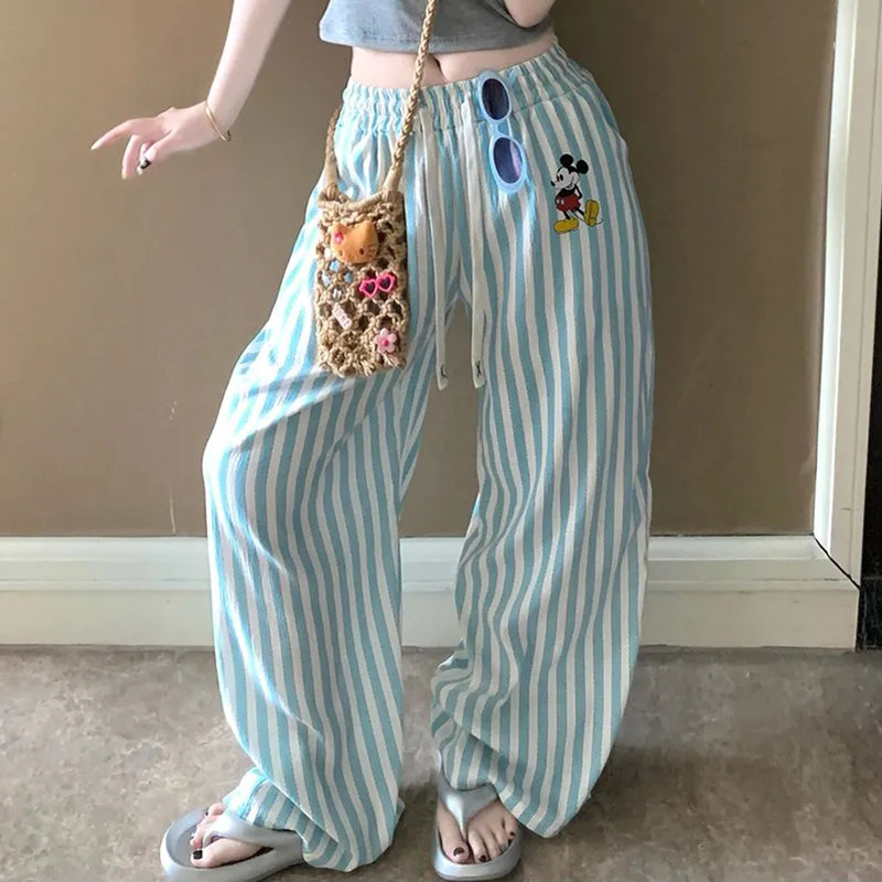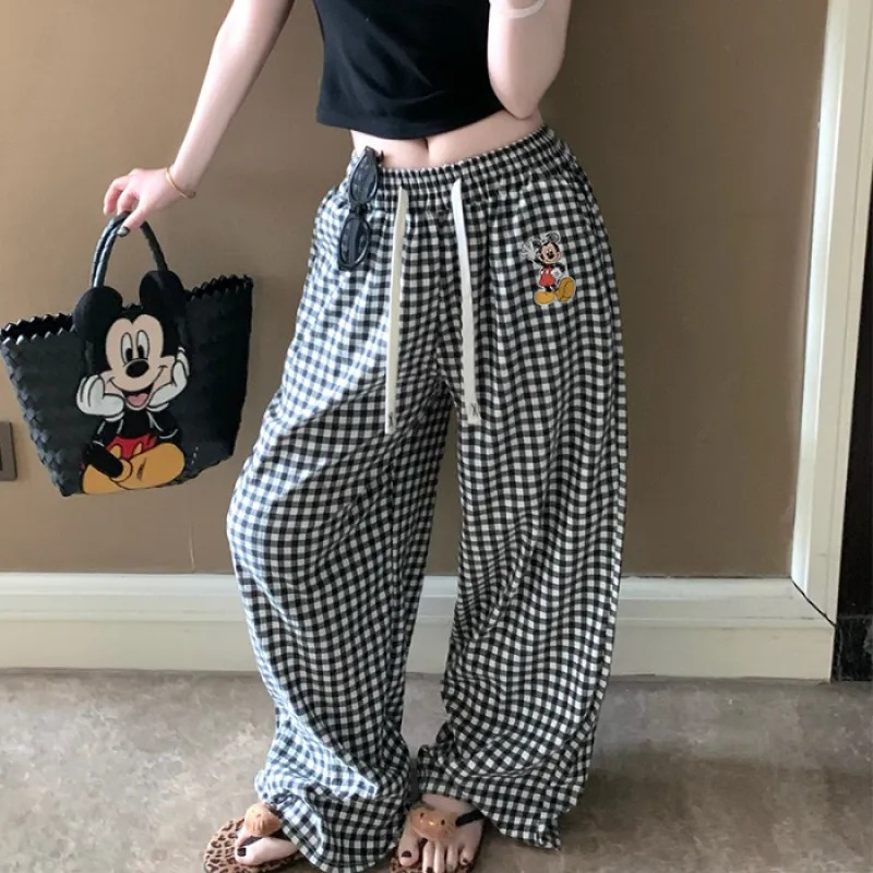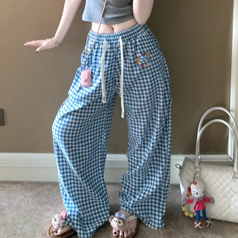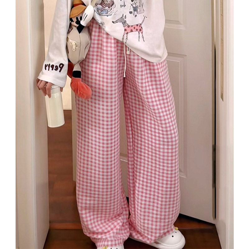 Главная страница > Летние прогулочные брюки, хлопковые пижамы, женские клетчатые прямые широкие брюки с двумя карманами, повседневные полосатые домашние брюки, верхняя одежда